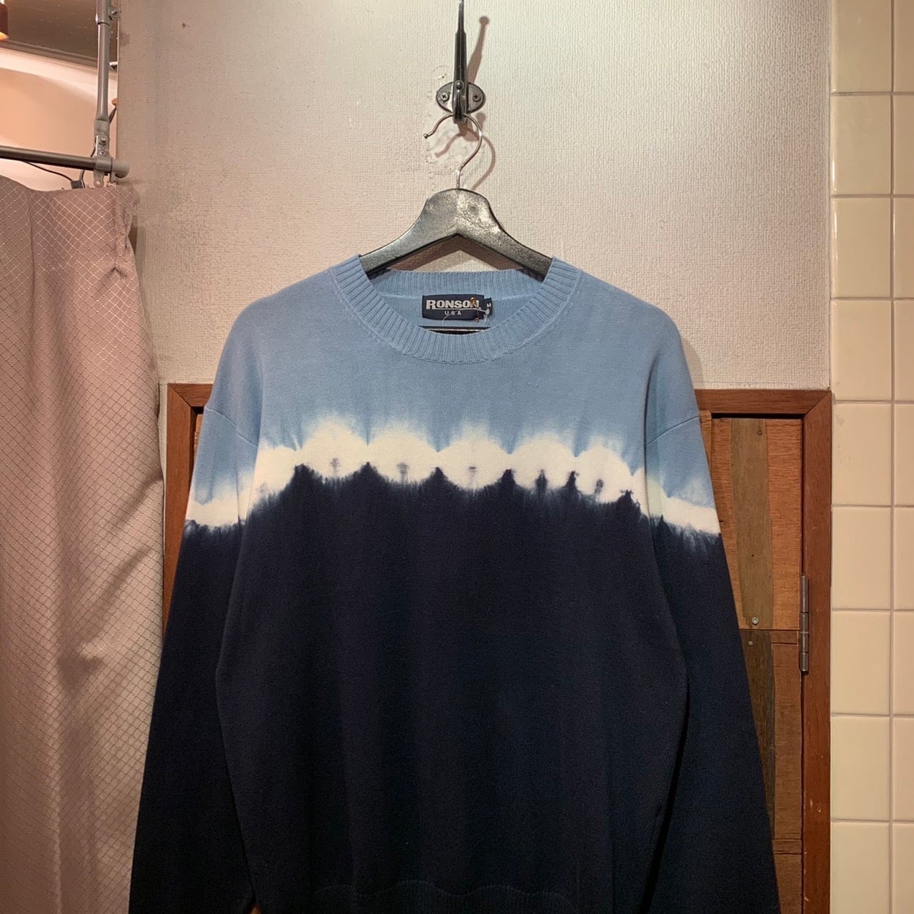 “RONSON” 「dead stock」navy×white×light blue cotton bleach design knit sweater