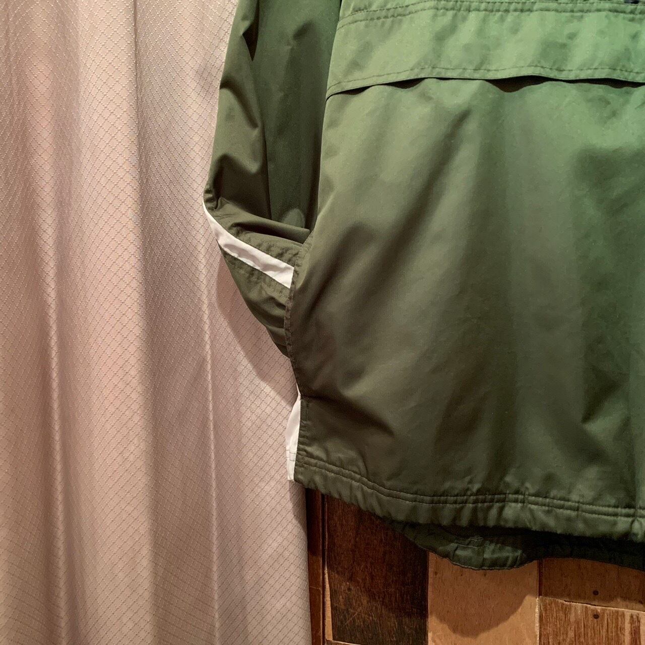 “NIKE” 00's moss green×white polyester logo&line design anorak parka