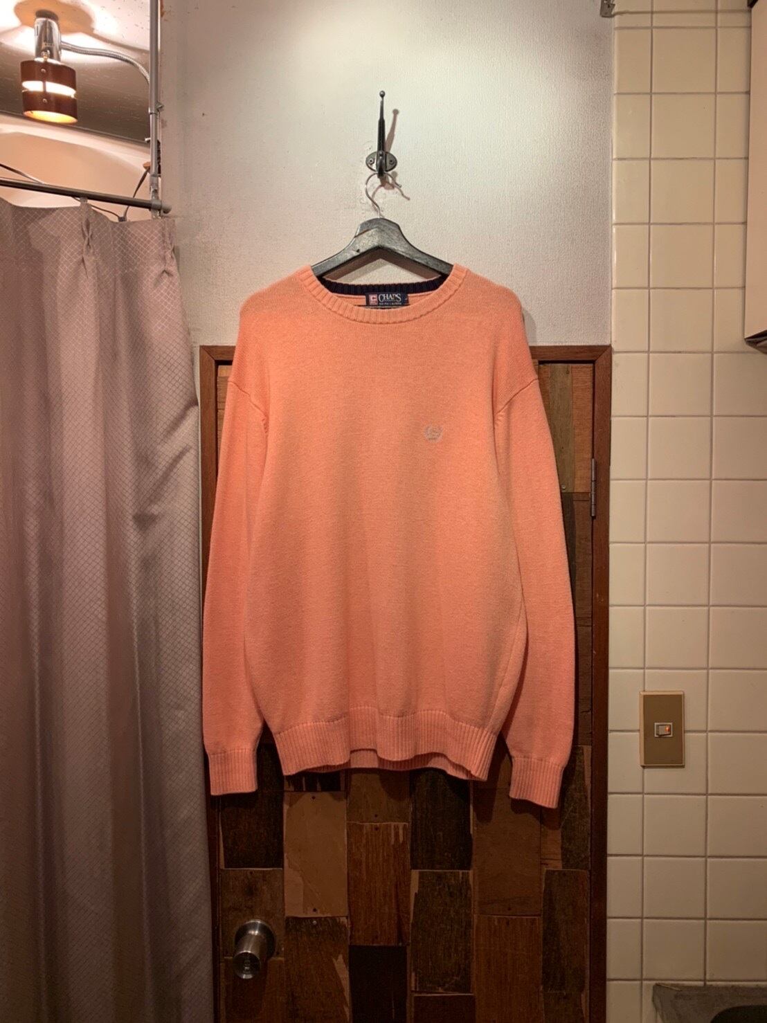 “CHAPS” light orange cotton point logo design L/S knit sweater