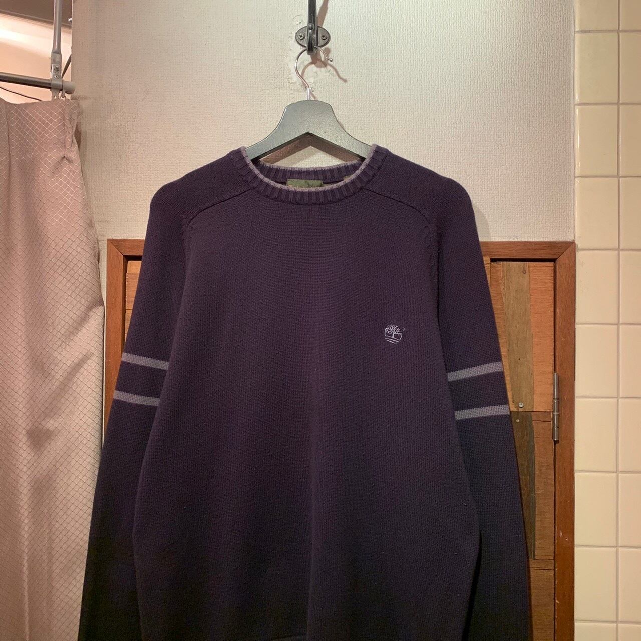 “Timberland” 2002! navy×gray cotton line&logo design knit sweater