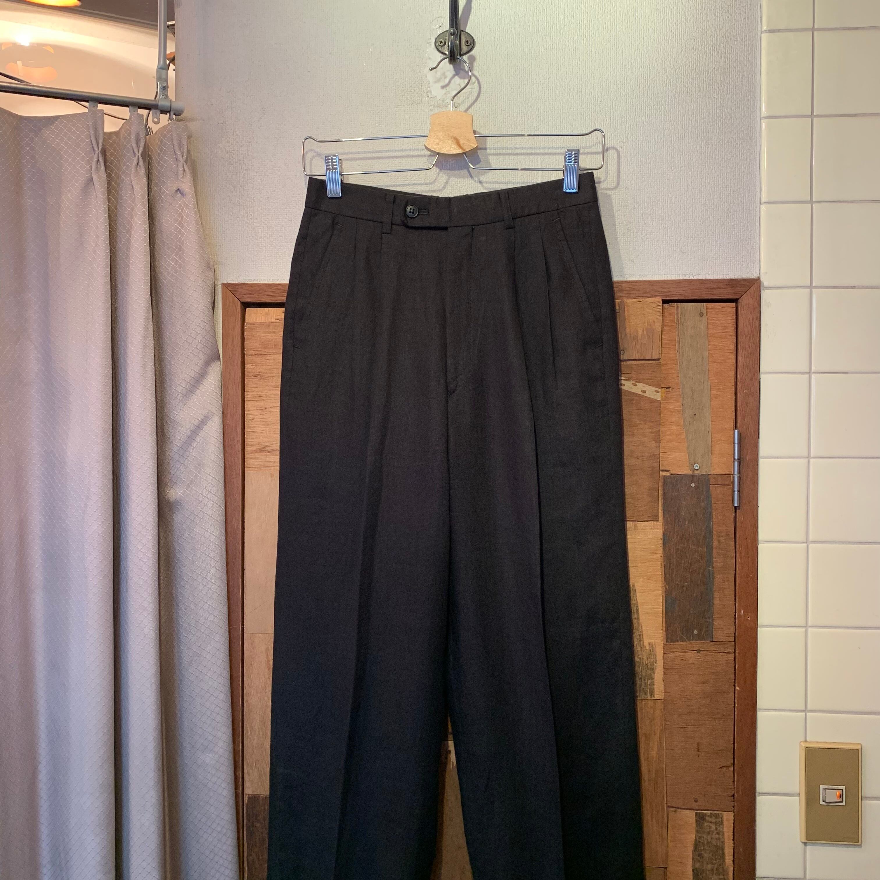 “renoma” 90’s black linen double breasted tailored jacket×2tuck slacks 2piece set-up