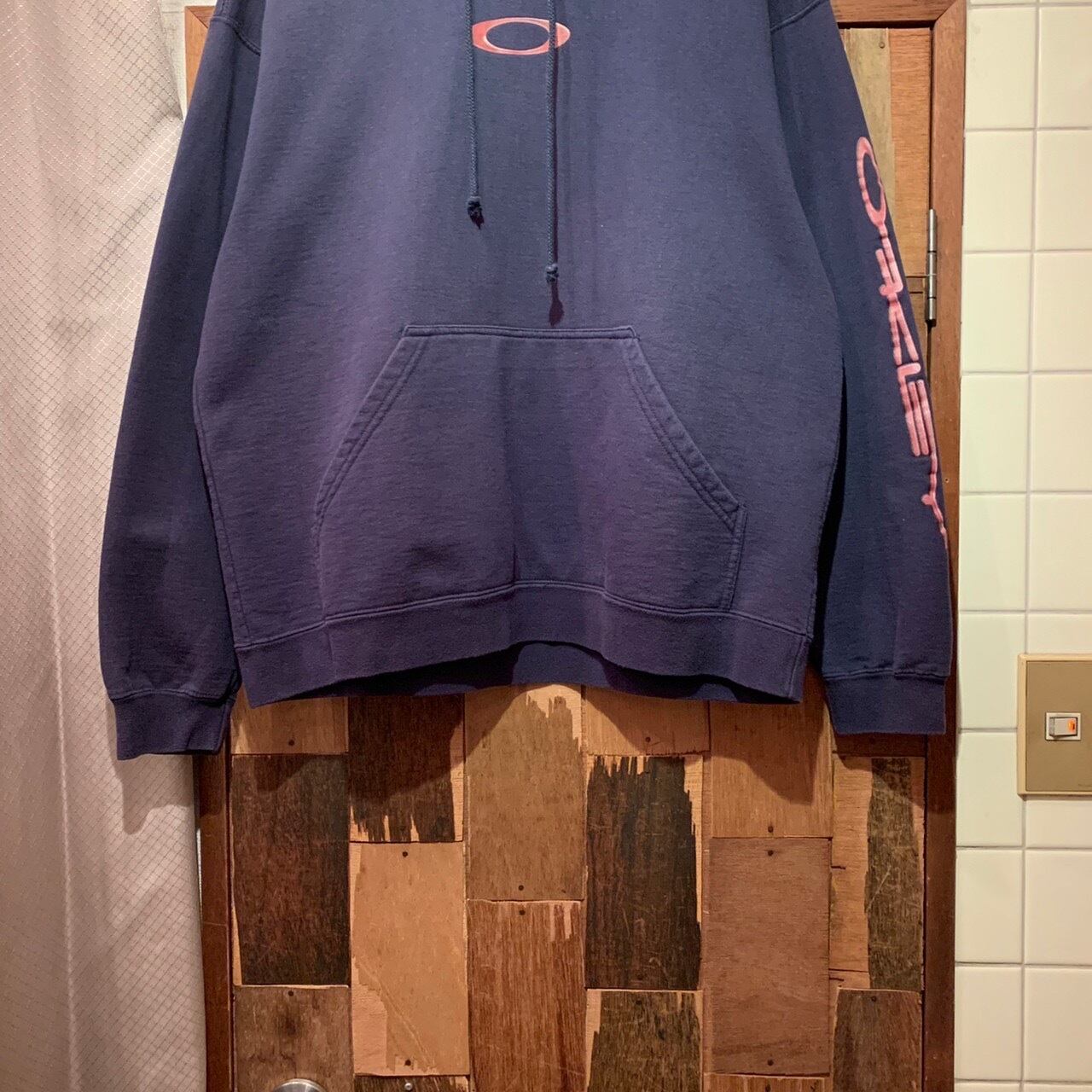 “OAKLEY” made in CANADA navy×wine red cotton/poly sleeve printed hoodie