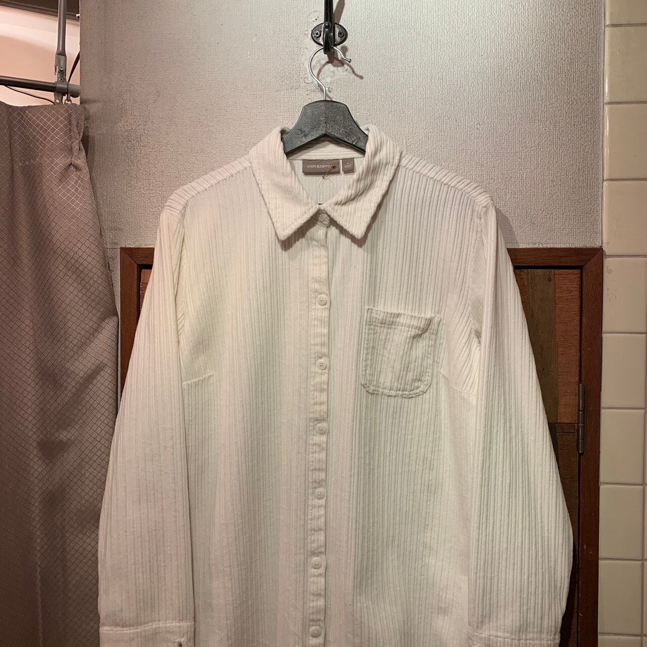 “croft&barrow” white cotton stripe pattern L/S shirt