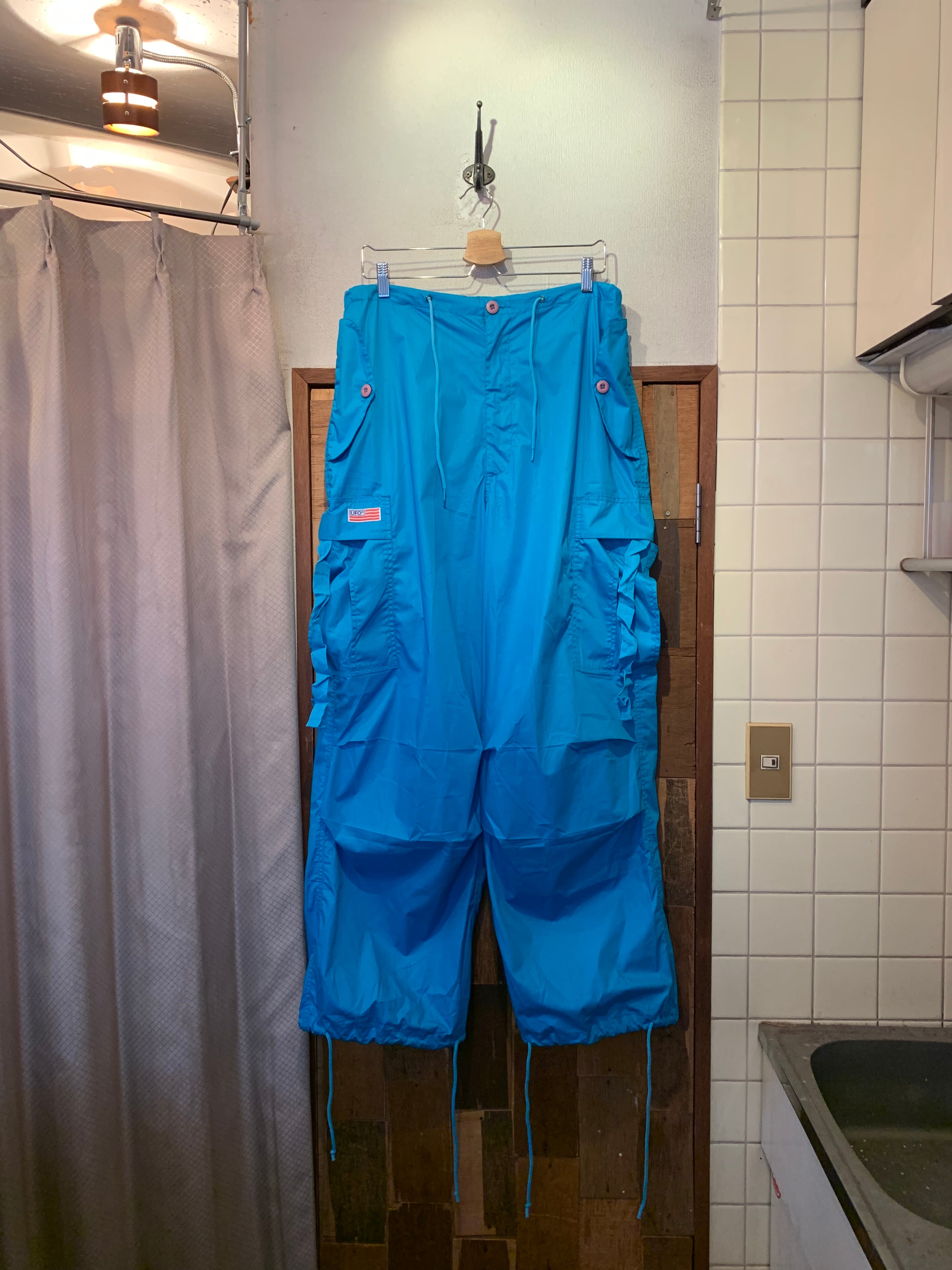 “UFO” turquoise blue poly/cotton design cargo pants
