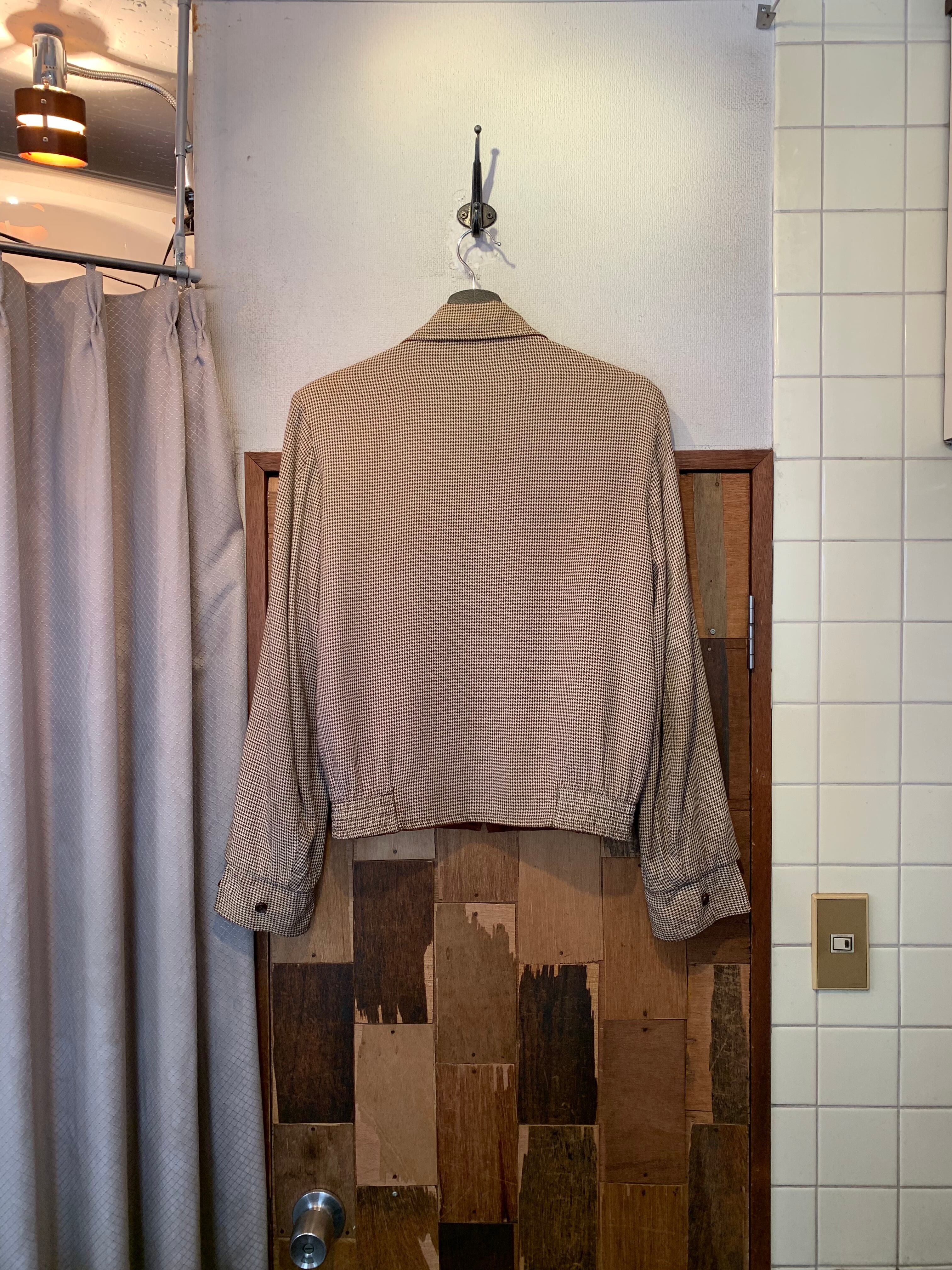 “brand unknown” ~60’s vintage brown×houndstooth reversie zip-up gabardine jacket