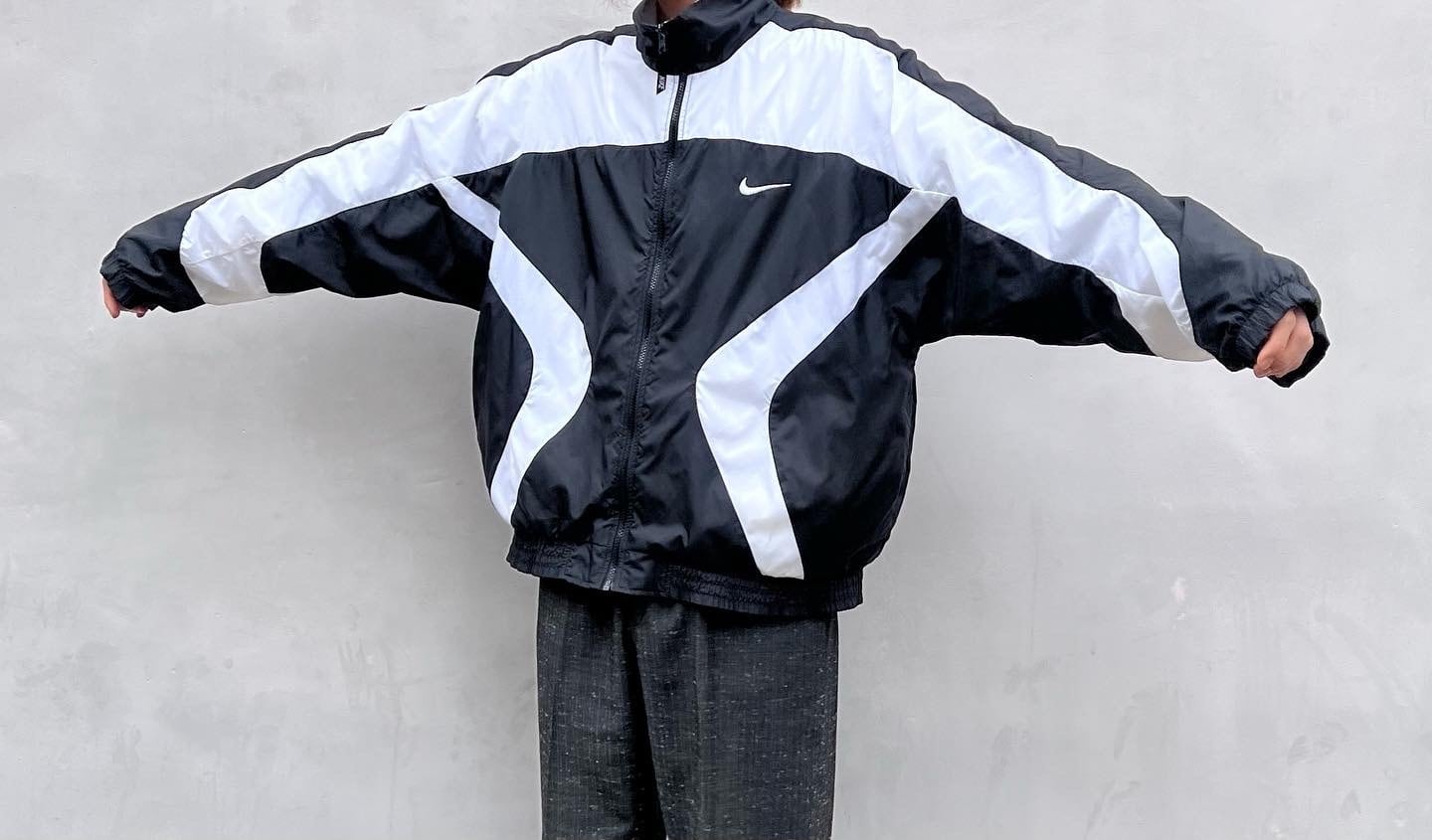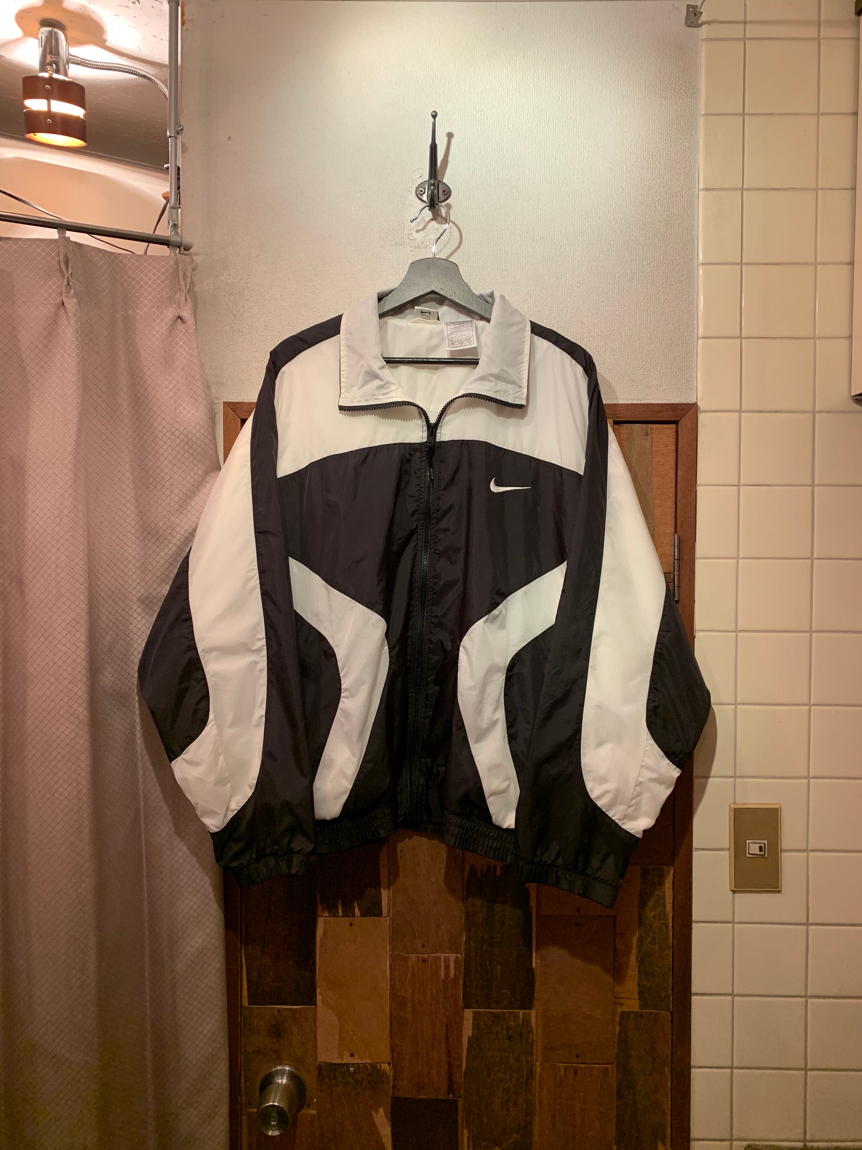 “NIKE” 90’s black×white nylon unique pattern zip-up jacket