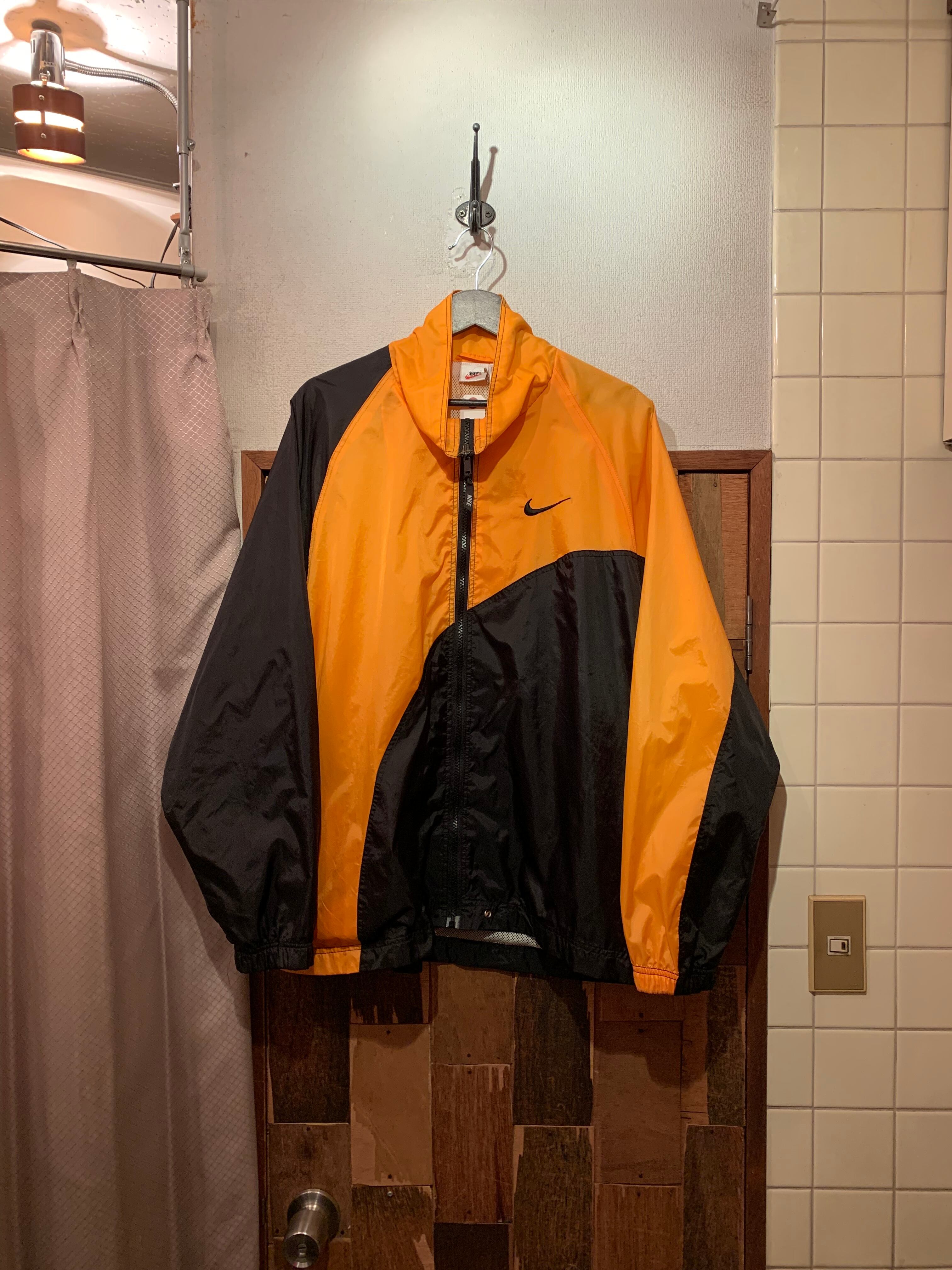 “NIKE” 90’s orange×black nylon unique pattern zip-up jacket