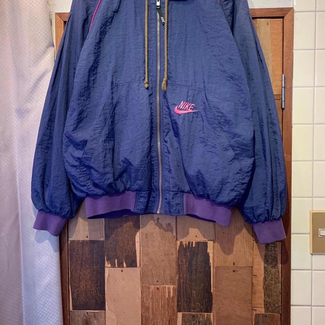 “NIKE” 90's~ mid blue×pink×khaki nylon/poly/cotton switch design zip-up hoodie jacket