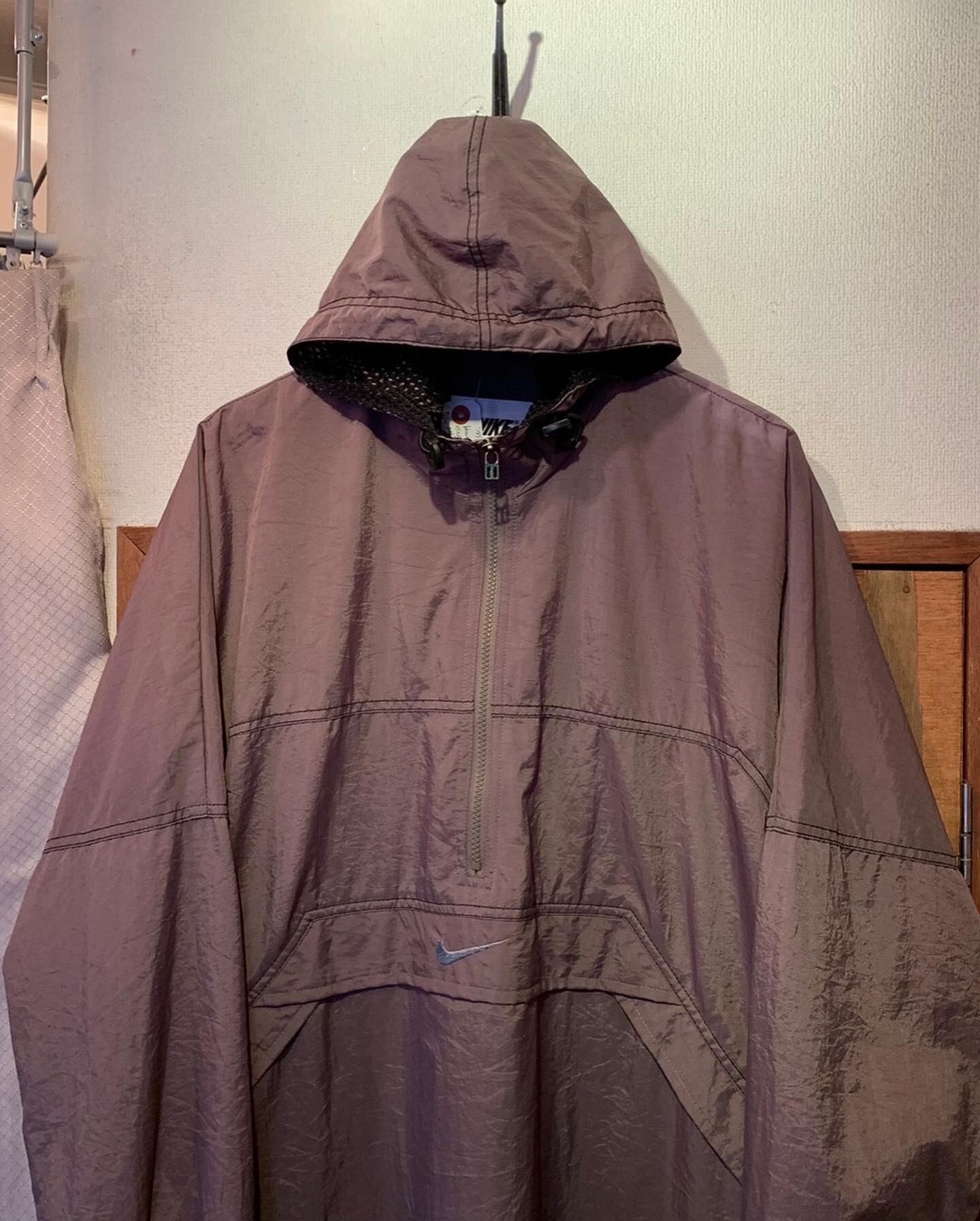 “NIKE” 90's brown base nylon stitch design anorak parka