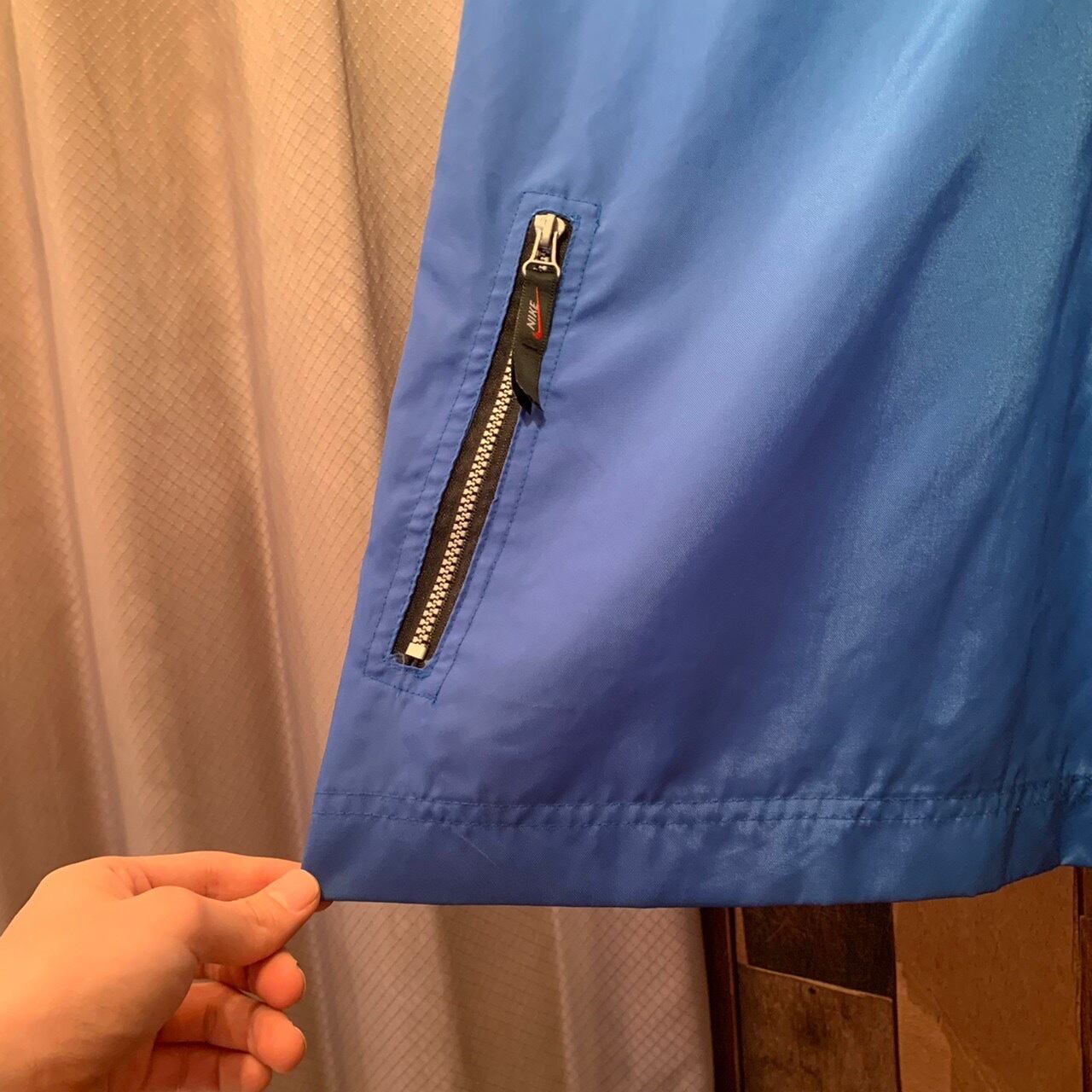 “NIKE” 90's light blue×white nylon embroidery logo design pullover