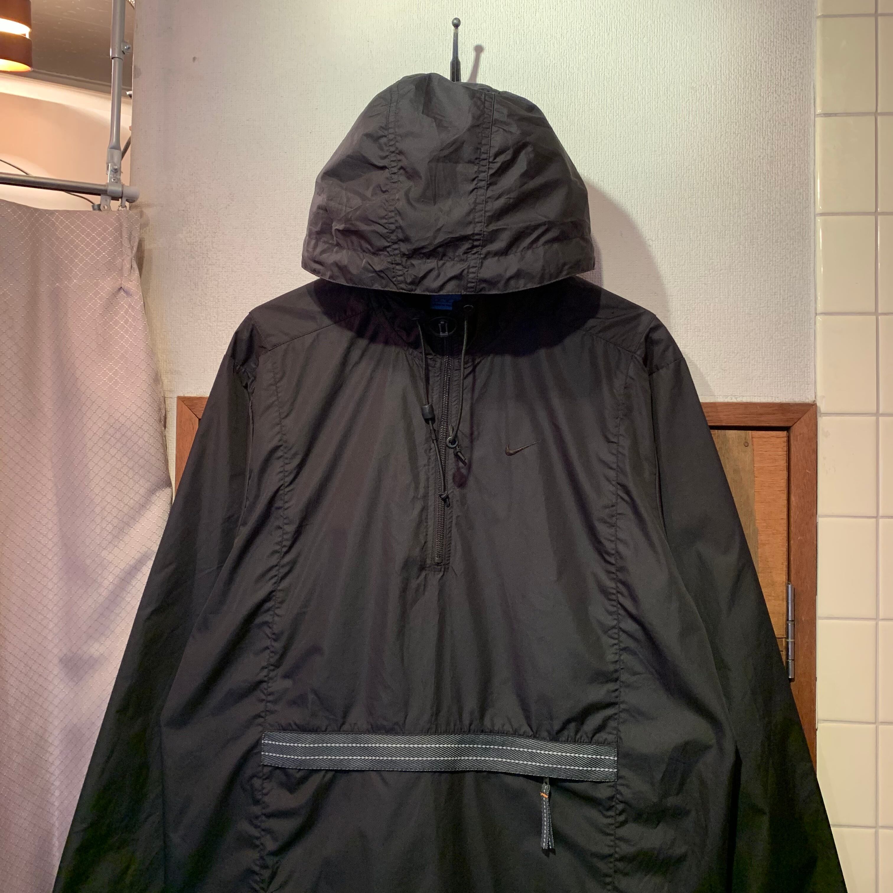 “NIKE” 90’s black polyester design anorak parka packable!!