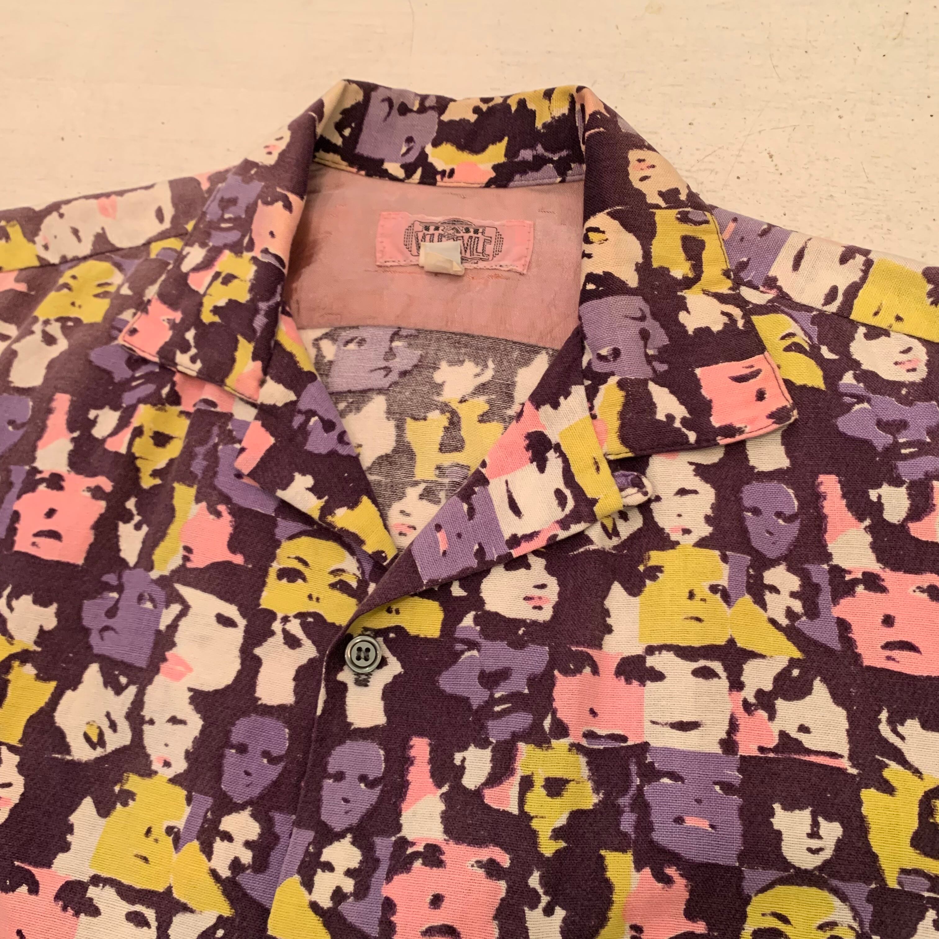 “Trash and Vaudeville” 80’s multi color base face printed L/S open-collar shirt made in USA