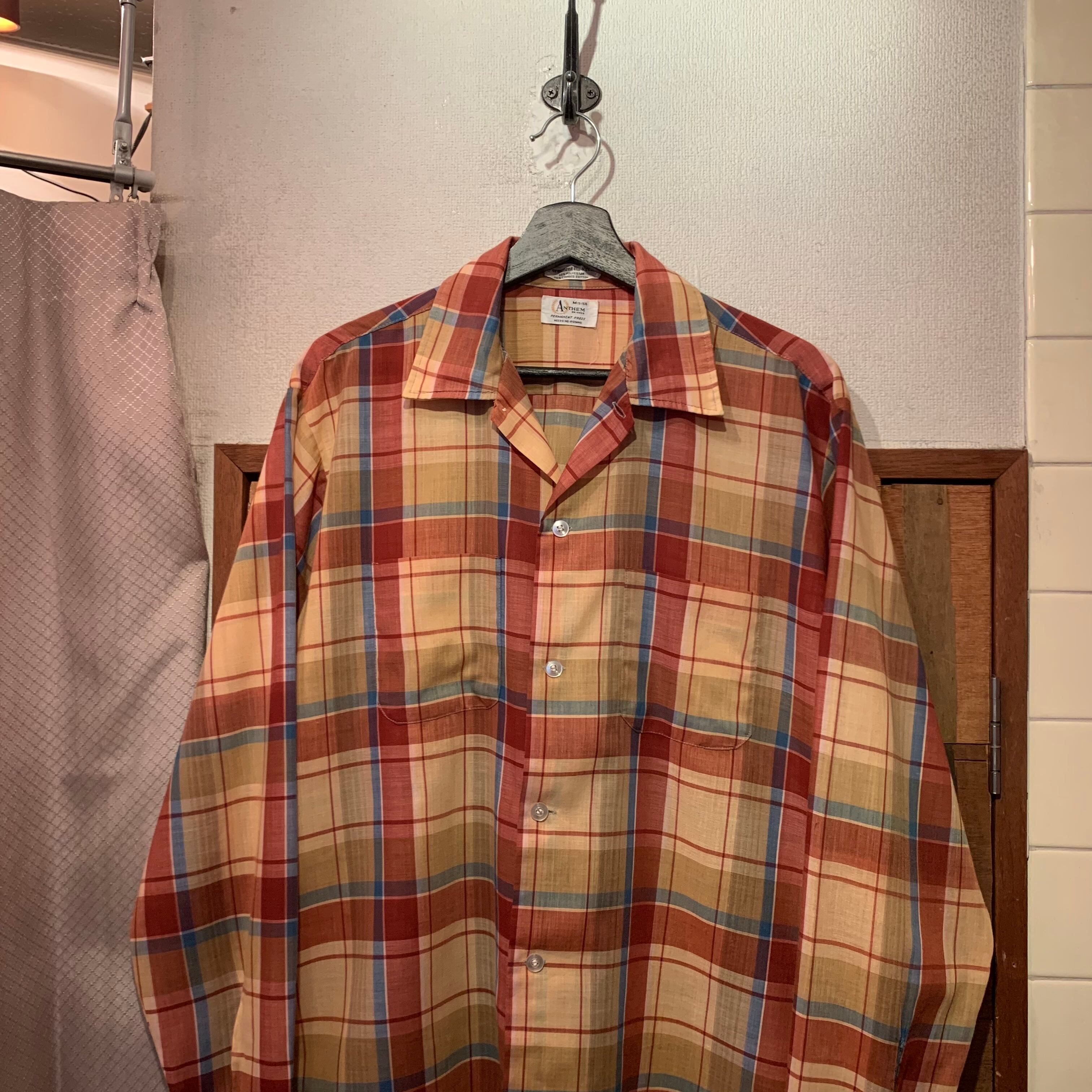 “ANTHEM” 60’s~70’s vintage multi color poly/cotton check pattern L/S shirt