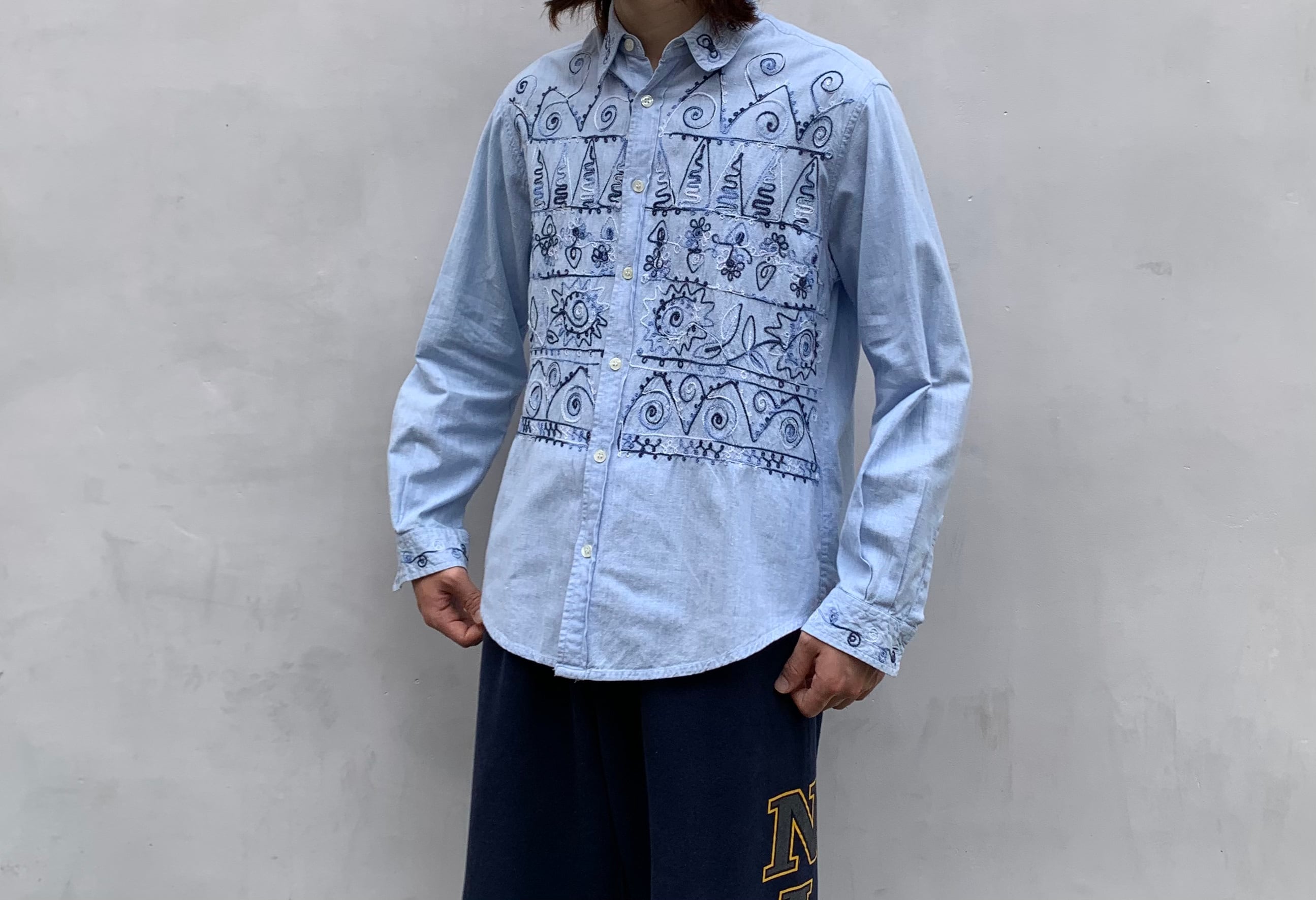 “St.BARBARA” light blue cotton embroidery design L/S chambray shirt