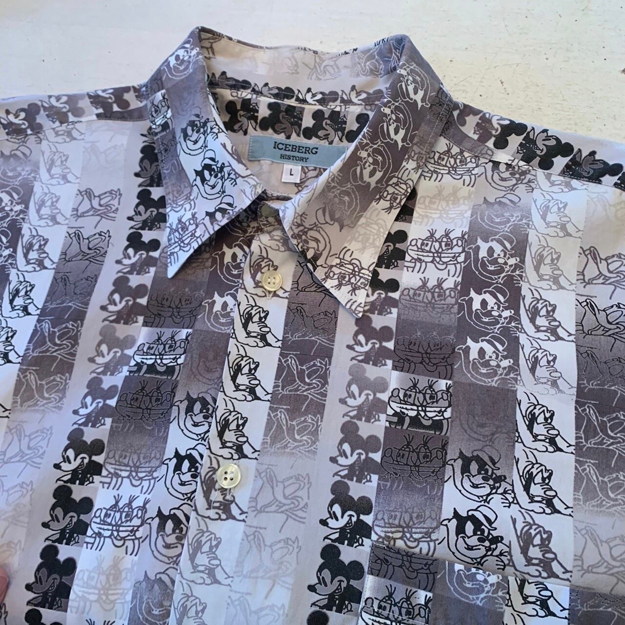 “ICEBERG” made in ITALY white×dark gray base cotton character printed L/S shirt
