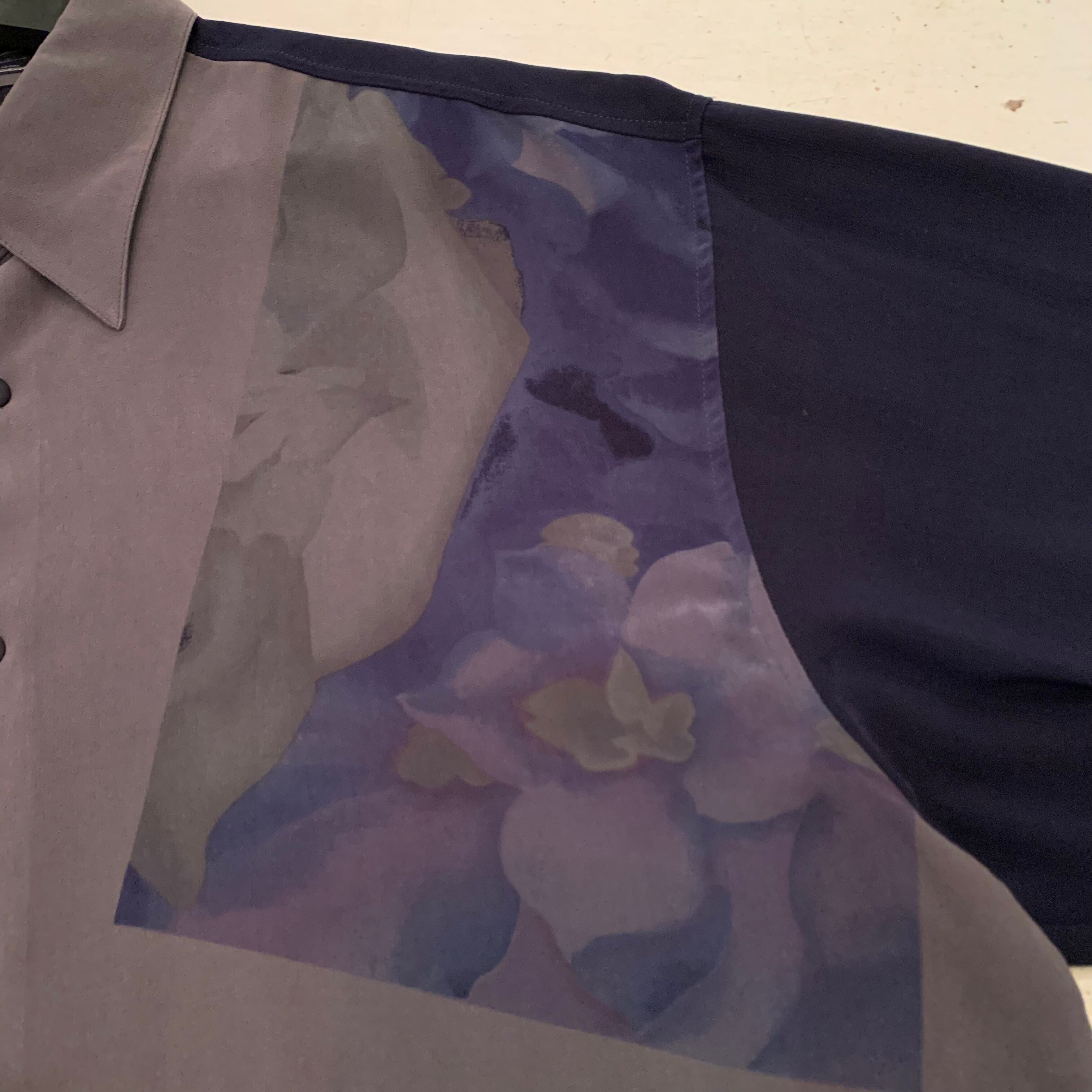 “Anews” dark navy×gray polyester unique pattern L/S shirt