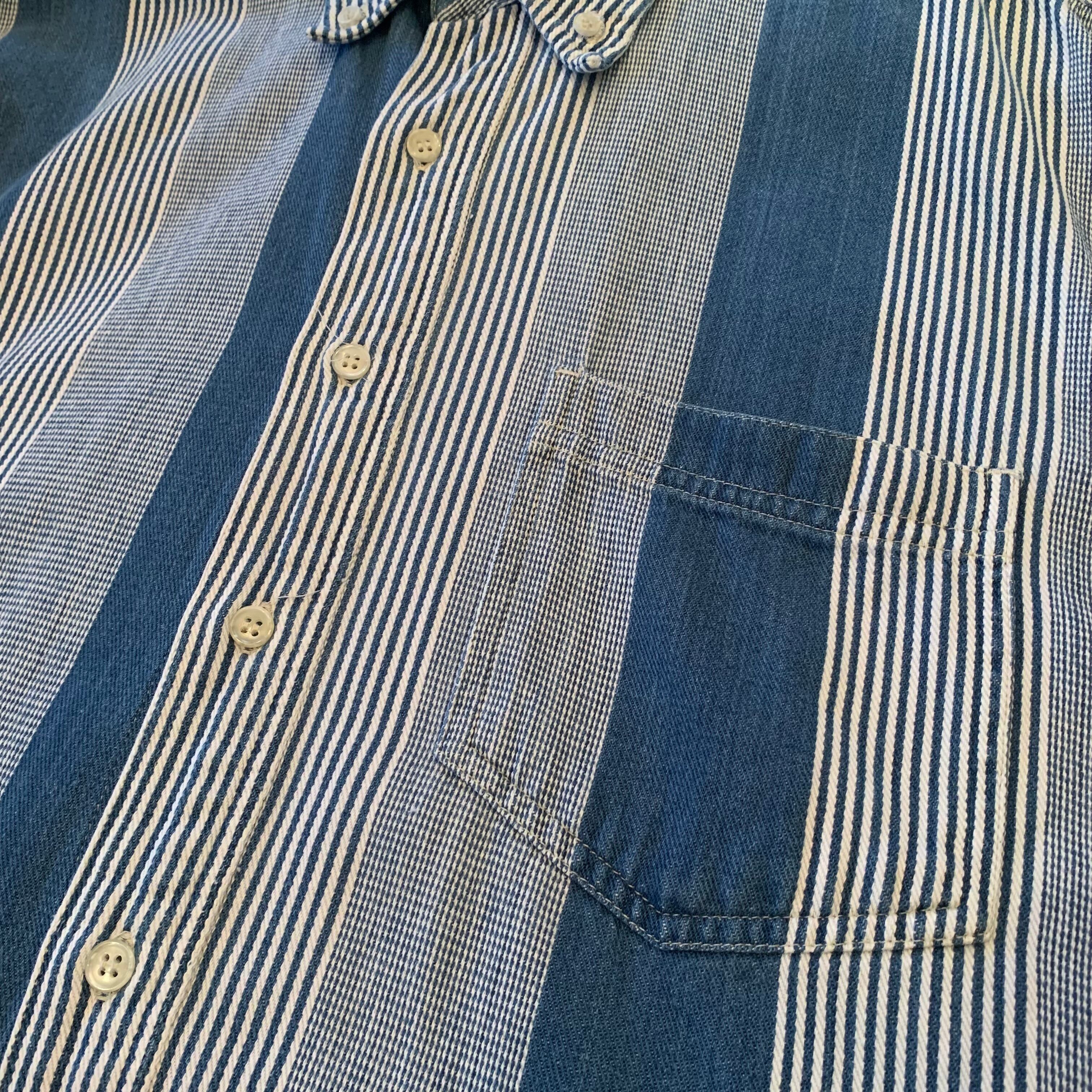 “REVIEW” indigo×white cotton multi pattern L/S BD shirt