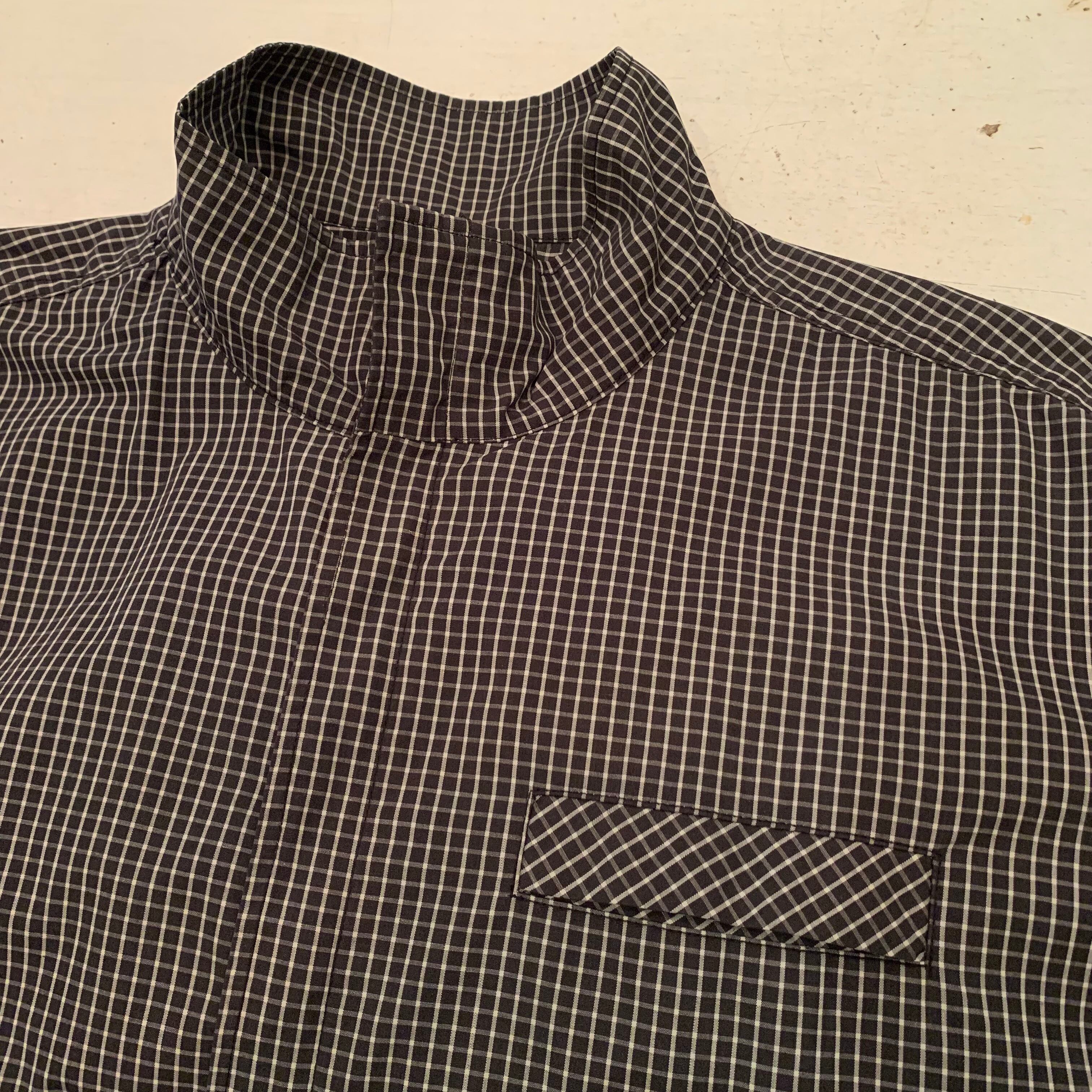 “a.m.p” charcoal×white check pattern zip-up shirt jacket