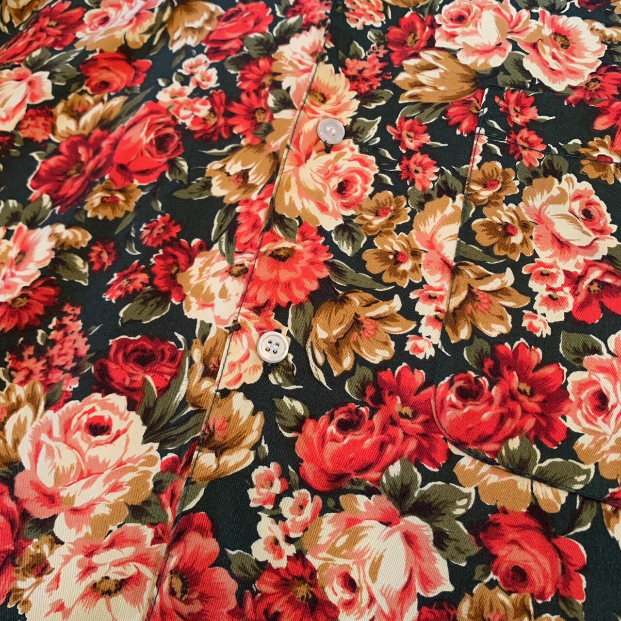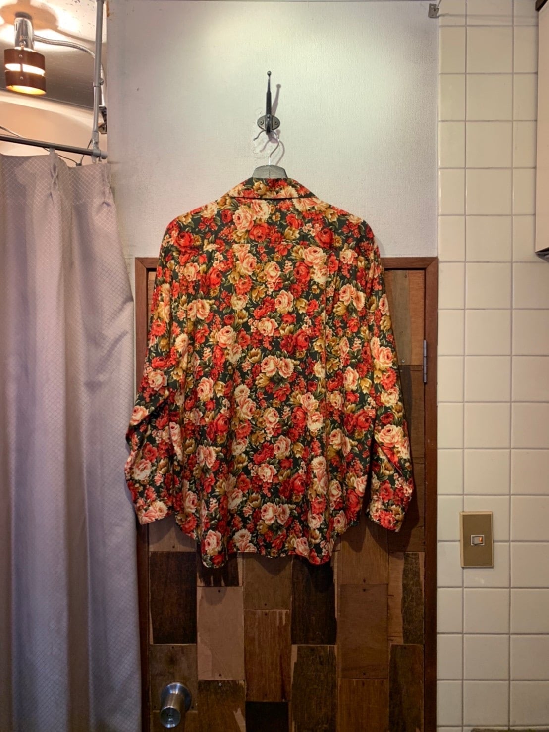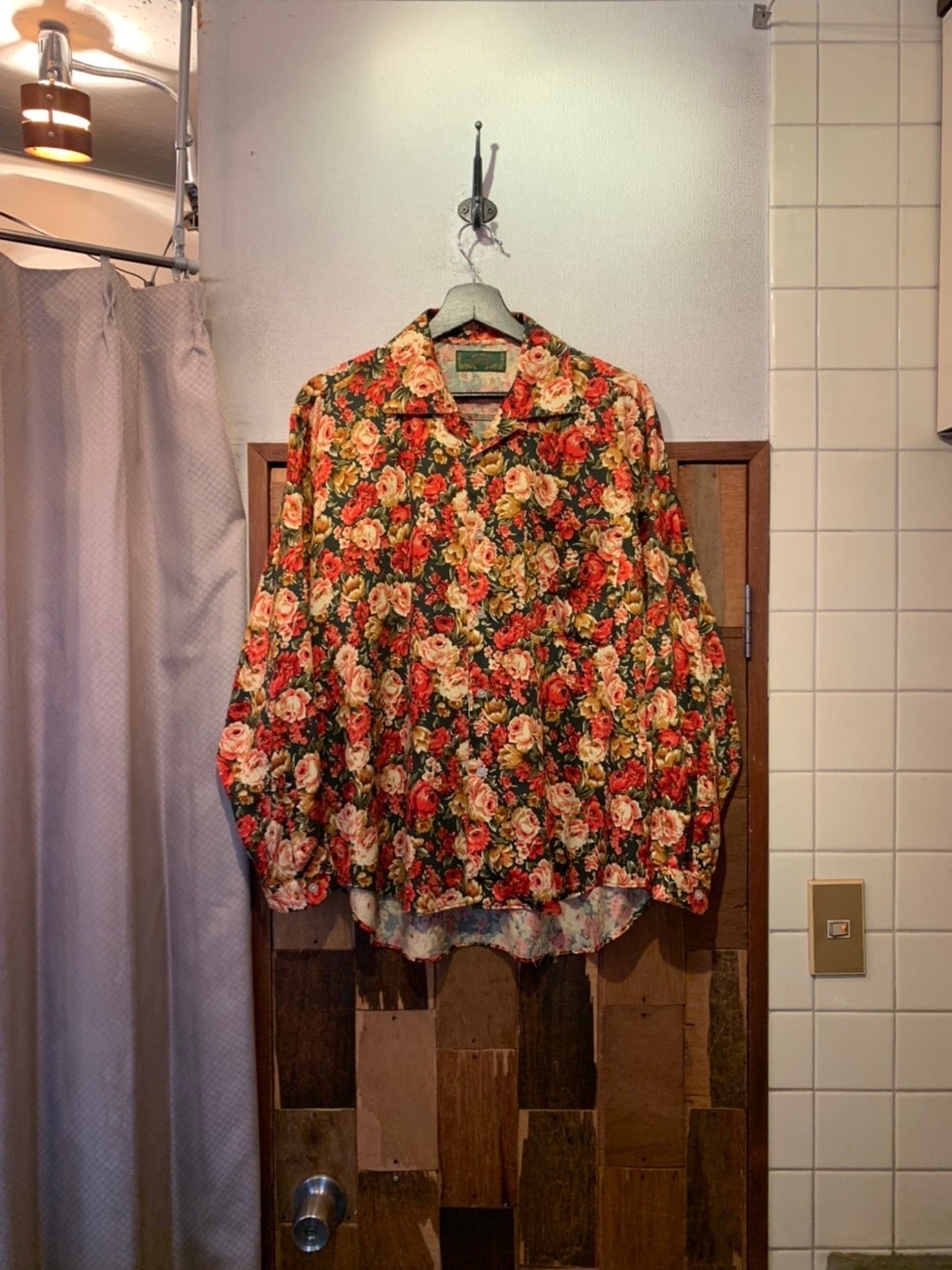 “JEAN-COX” dark green×red base rayon/wool flower pattern L/S open-collar shirt