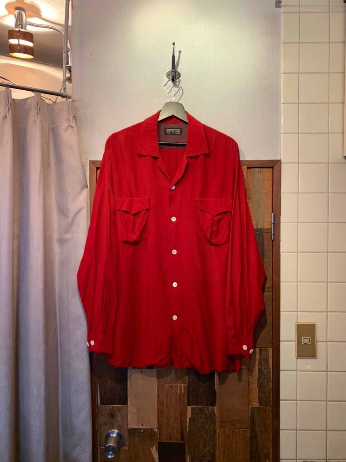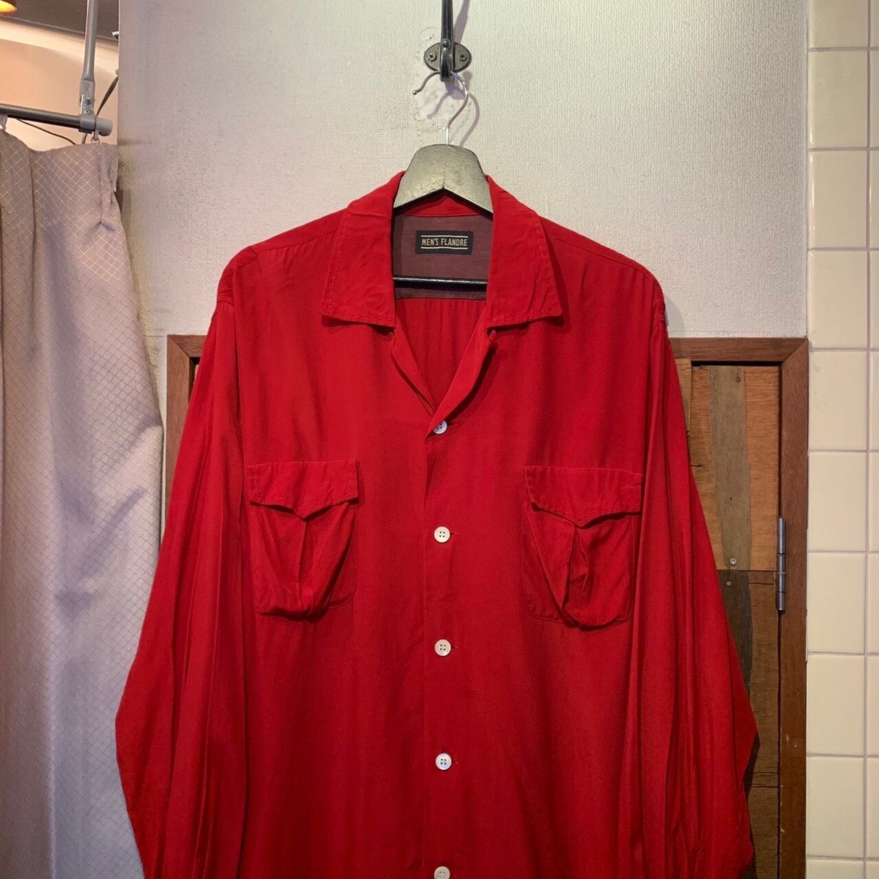 “MEN'S FLANDRE” red stitch design L/S open-collar shirt