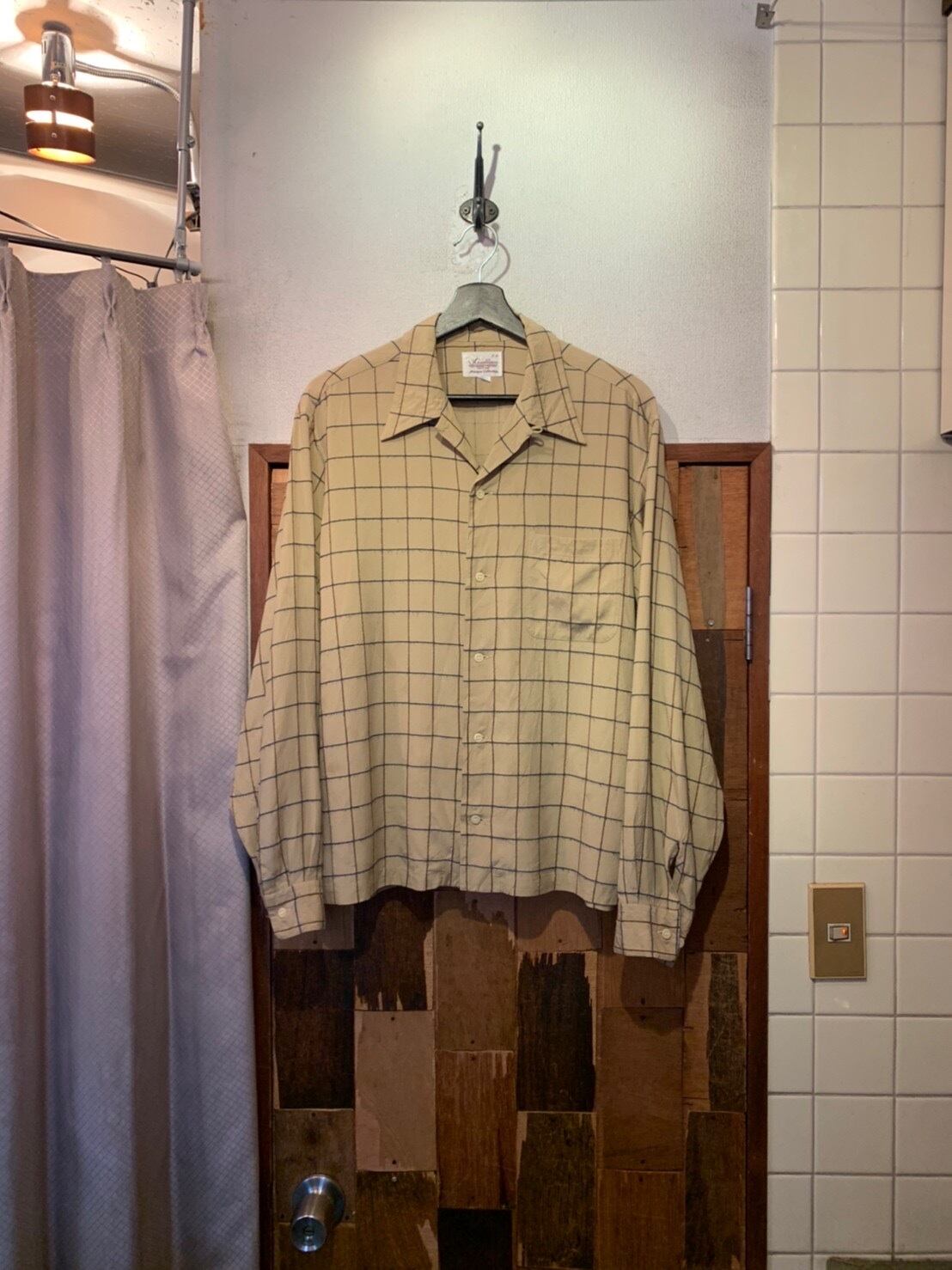 “Casallanca” khaki beige check pattern L/S open-collar shirt