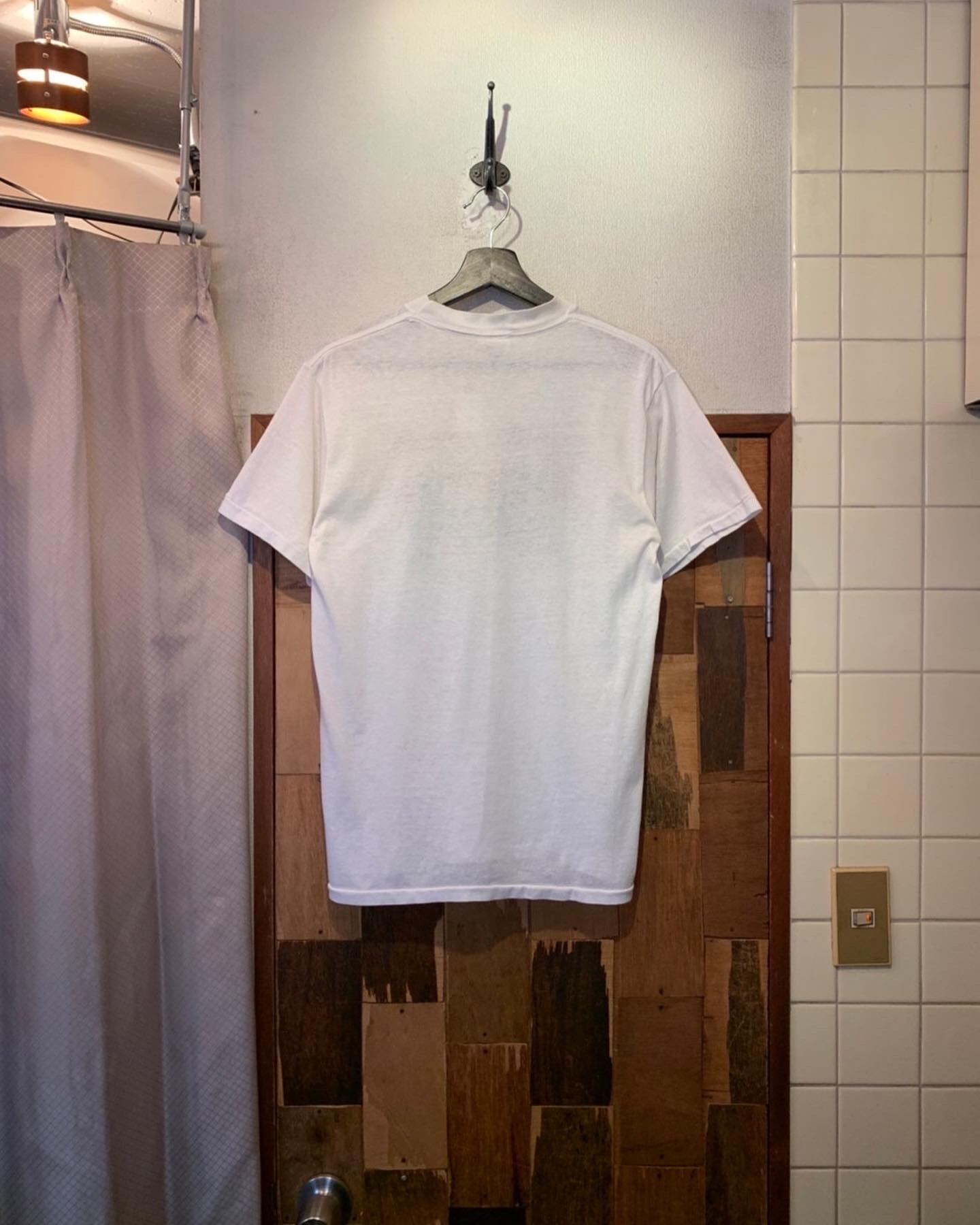 “brand unknown” 90's made in U.S.A 「BEATLES」white poly/cotton character pattern S/S T-shirt