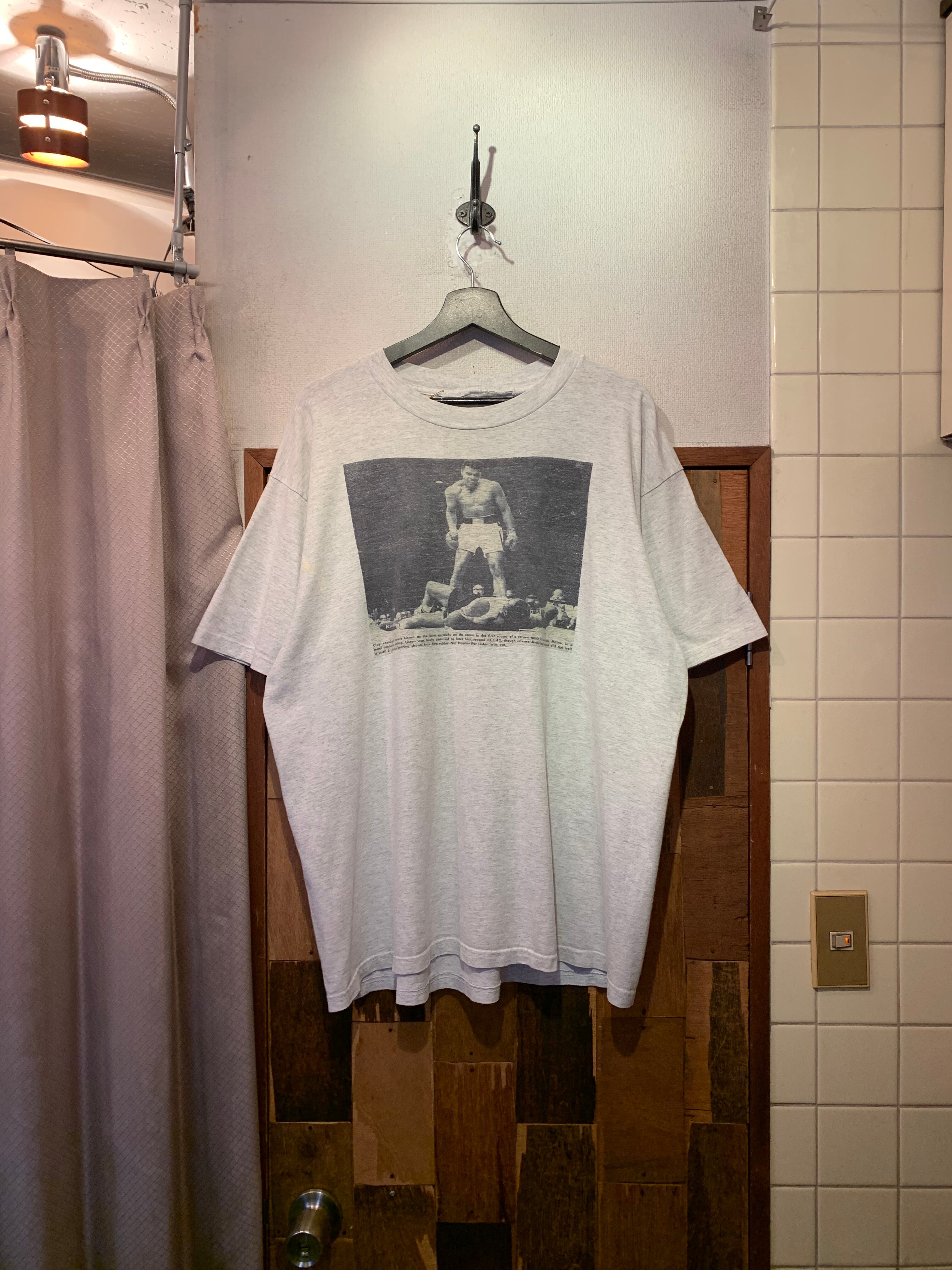 “brand unknown” 90’s~00’s「モハメド・アリ」 light gray printed S/S T-shirt