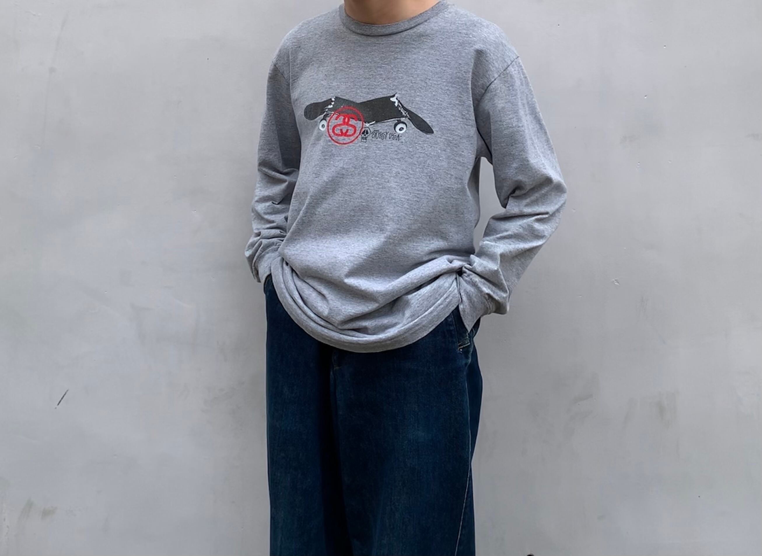 “Stussy” 90’s gray cotton printed L/S T-shirt made in USA