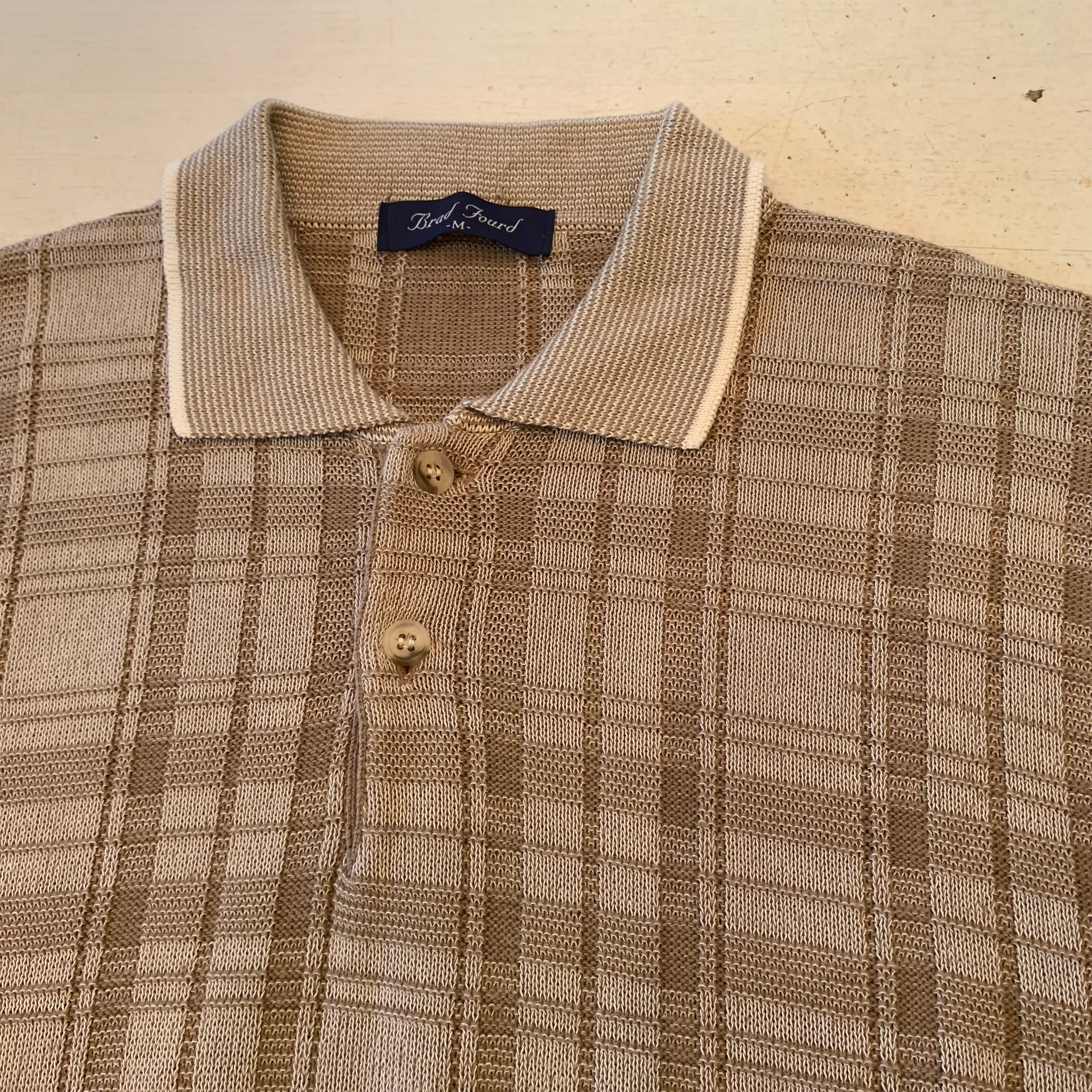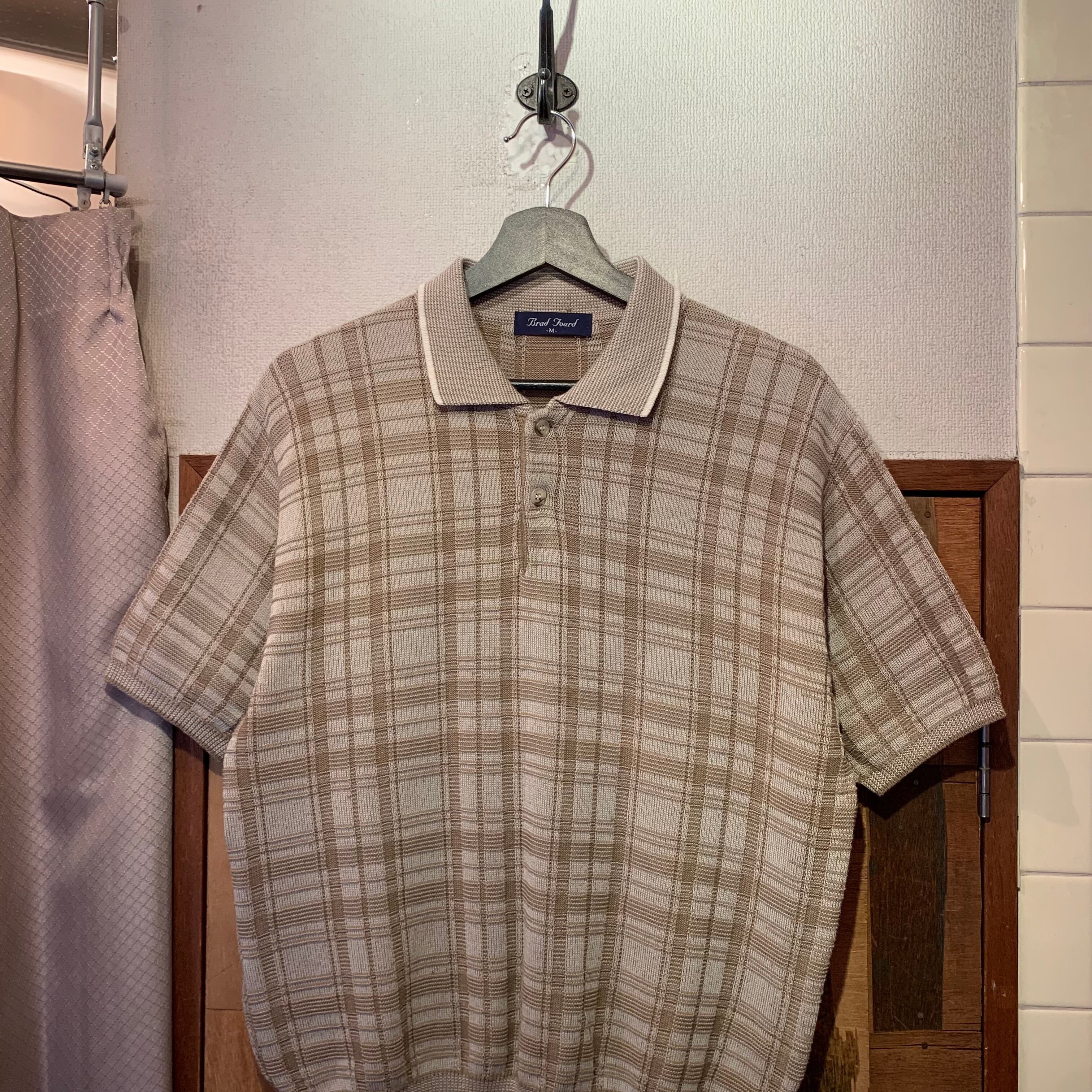“Brad Fourd” light brown×beige cotton/acrylic check pattern S/S knit polo