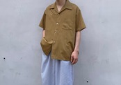 “TOWNCRAFT 60’s~vintage light brown point embroidery design S/S open-collar shirt