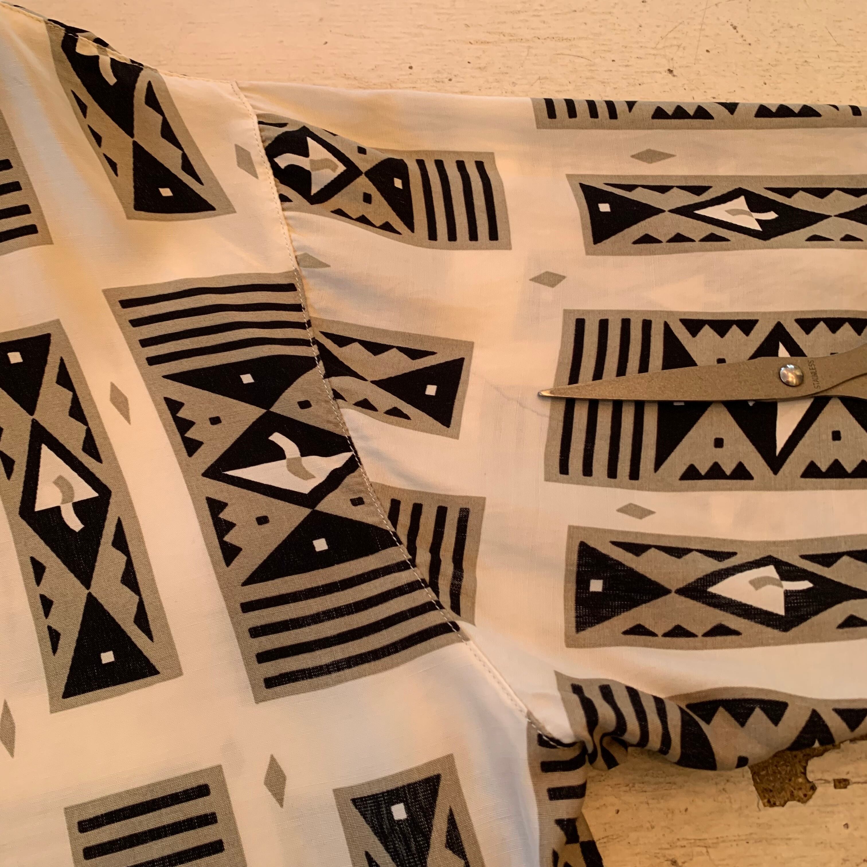 “ESPRIT” white base repeating pattern S/S open-collar shirt
