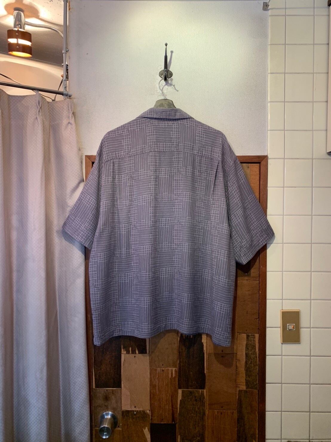 “Tommy Bahama” gray base silk repeating pattern S/S open-collar shirt