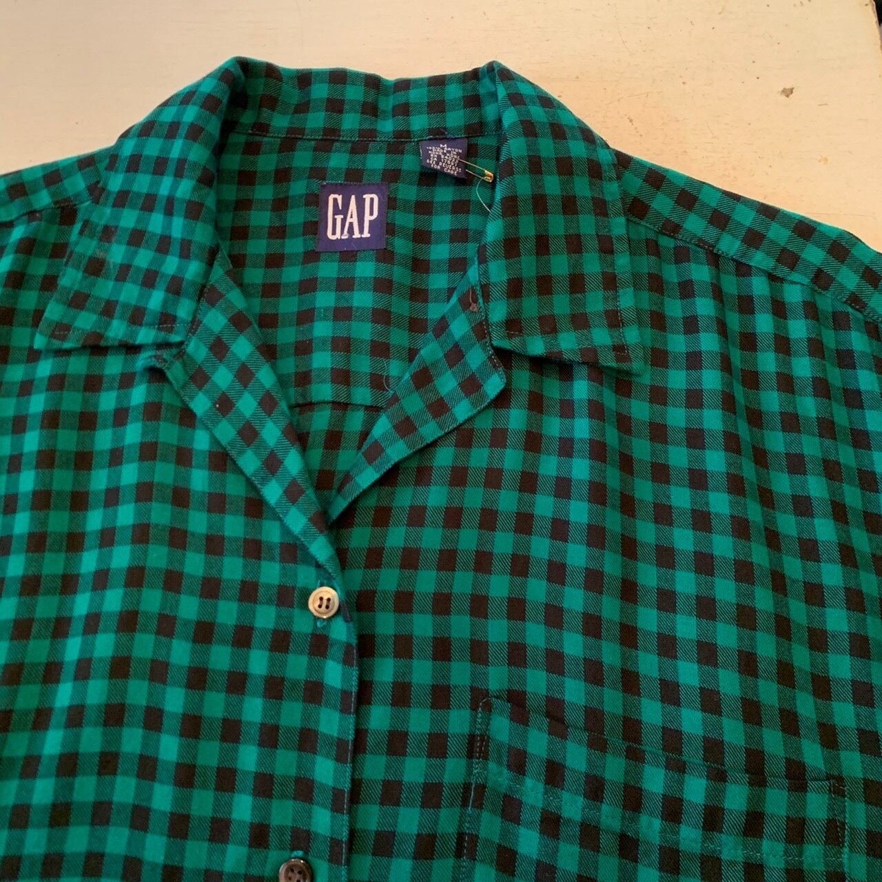 “GAP” 90's green×black rayon check pattern S/S open-collar shirt