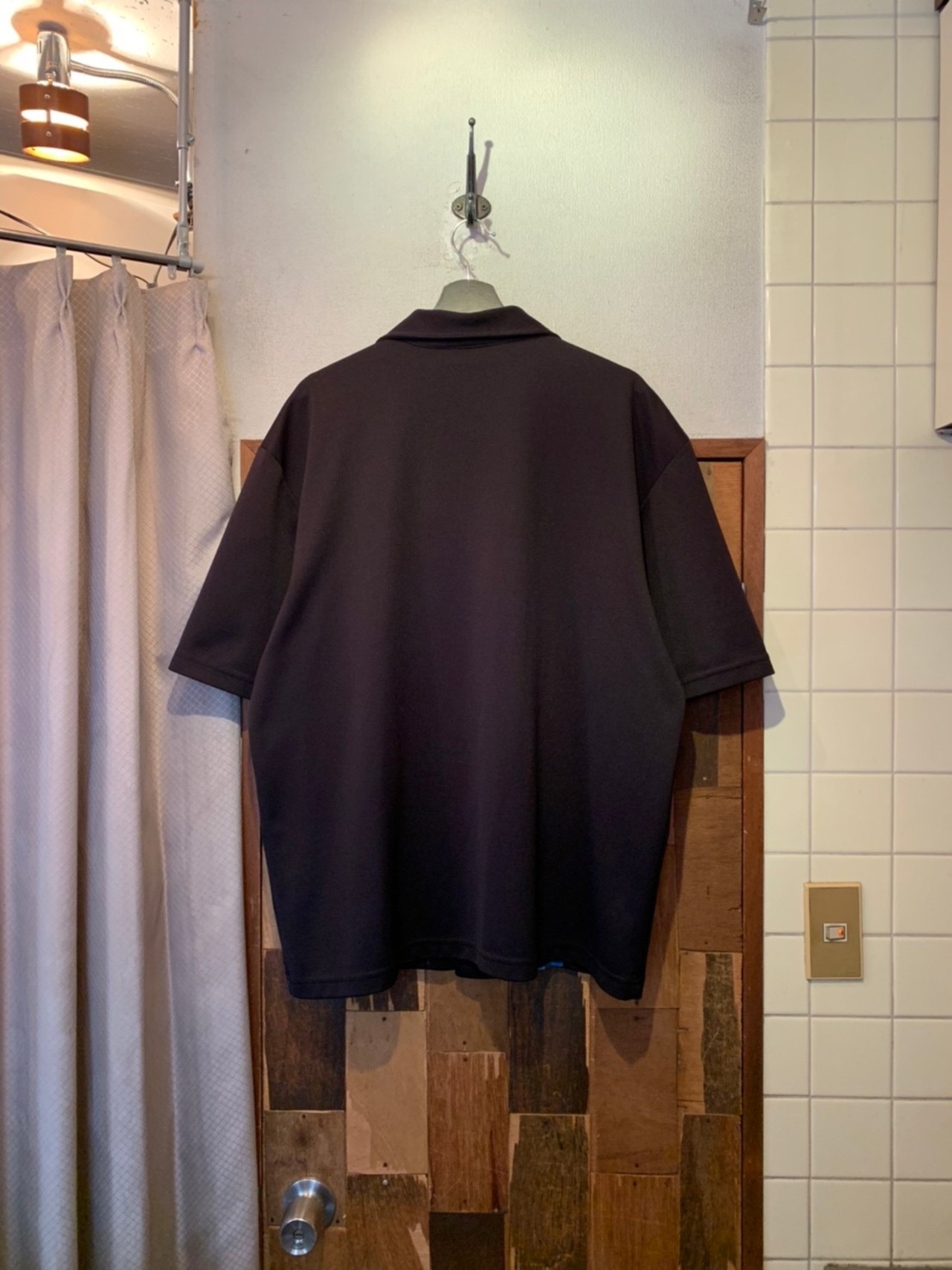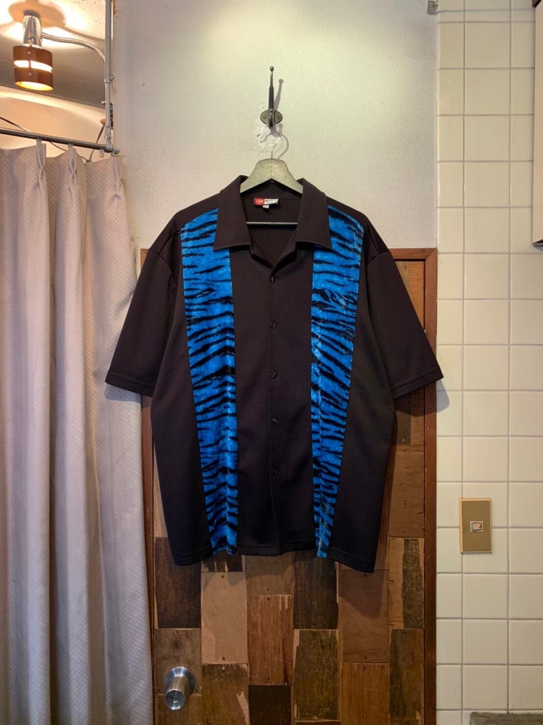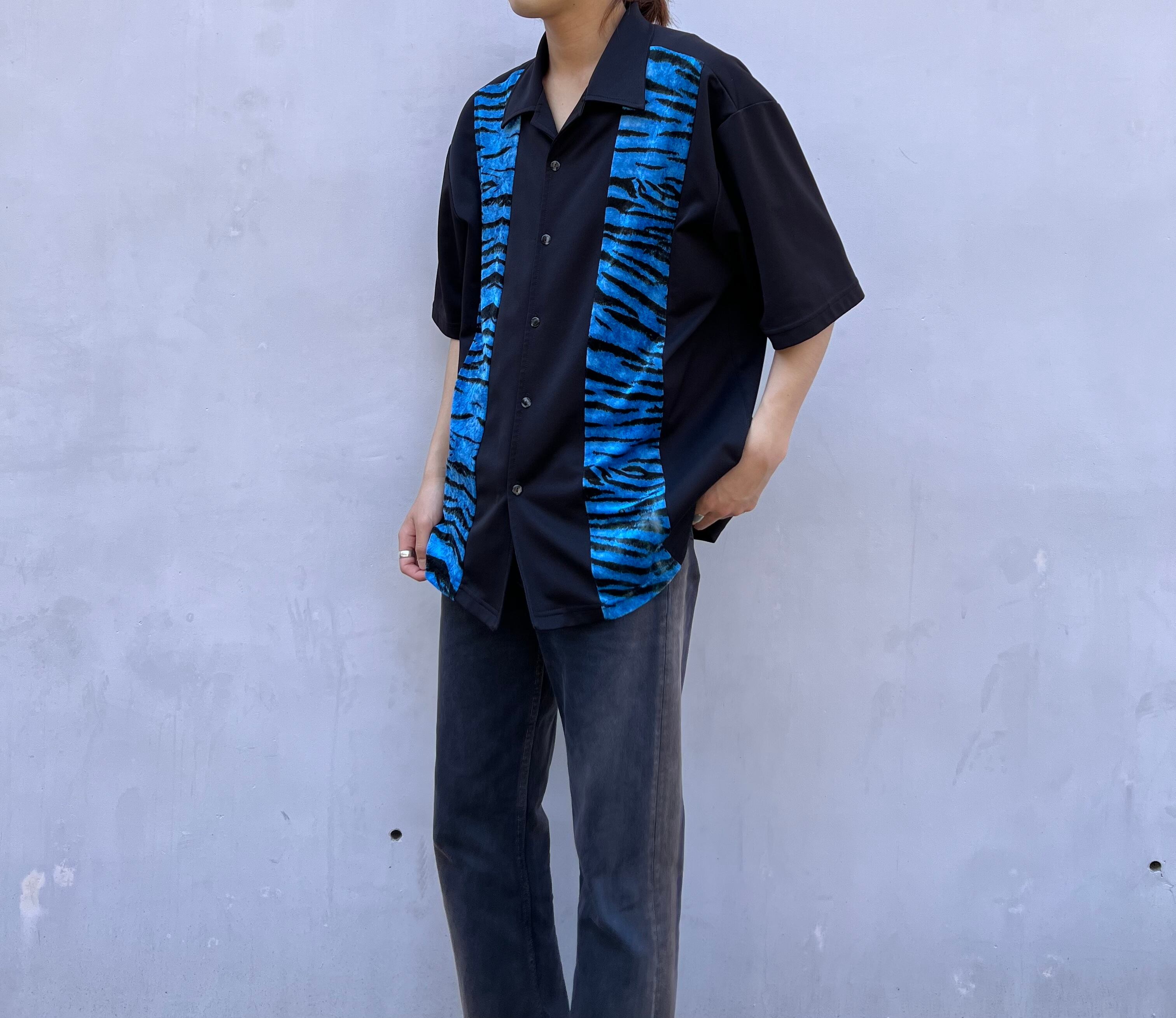 “IZITU” black×light blue leopard pattern S/S open-collar shirt