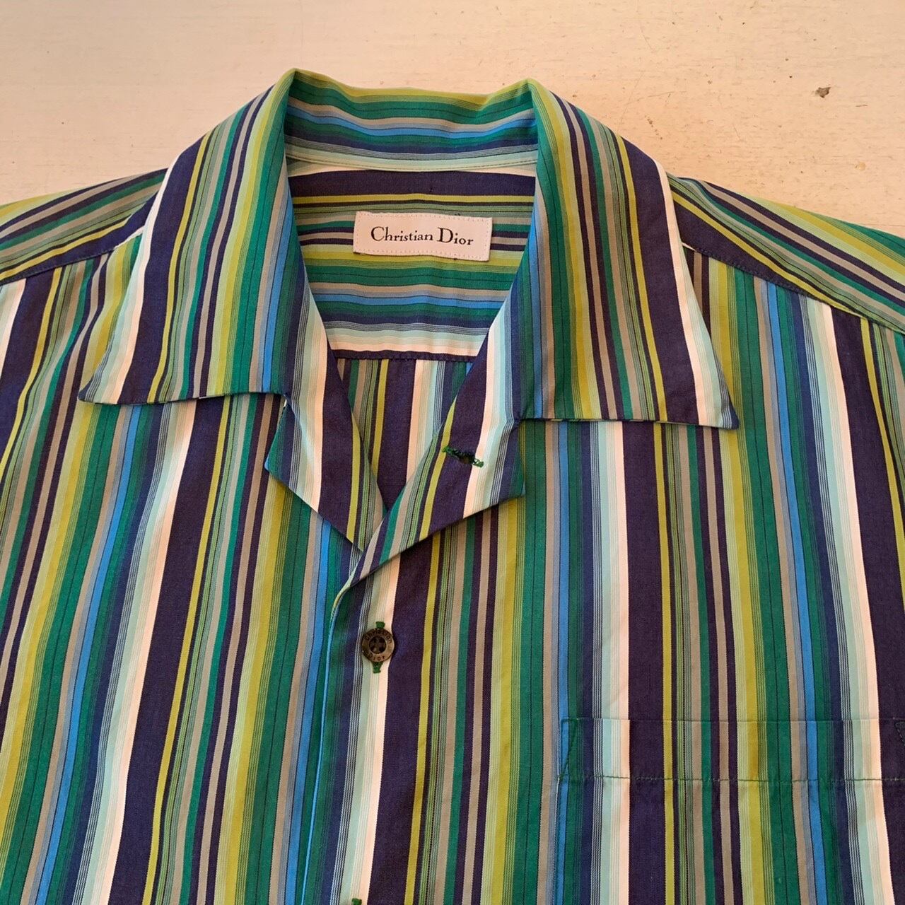 “Christian Dior” multi color base stripe pattern S/S open-collar shirt