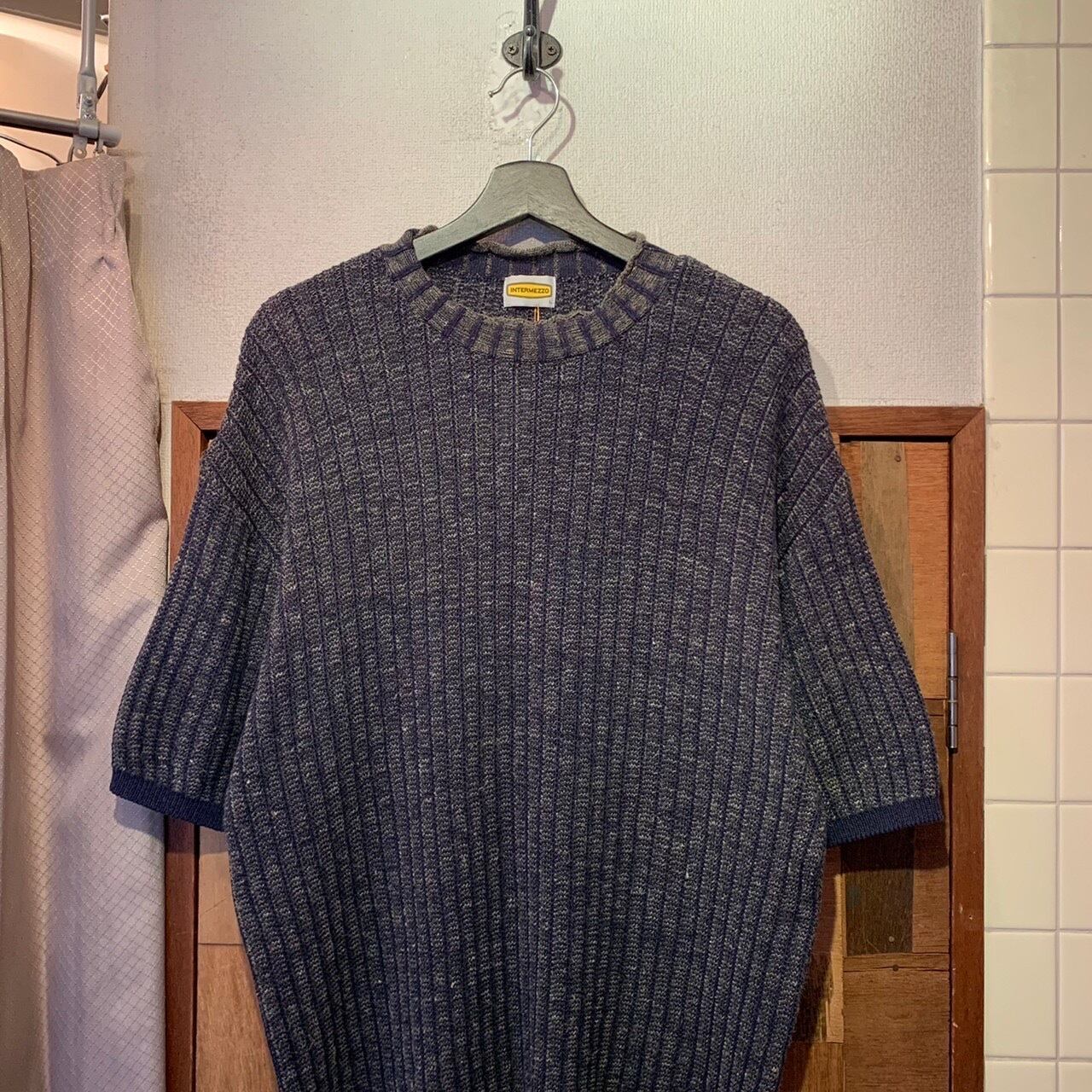 “INTERMEZZO” navy×gray base cotton/linen/rayon/poly repeating pattern S/S knit