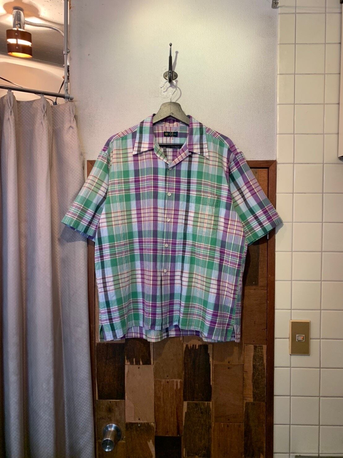 “UNIVERSITY SHOP” multi color base cotton check pattern S/S open-collar shirt
