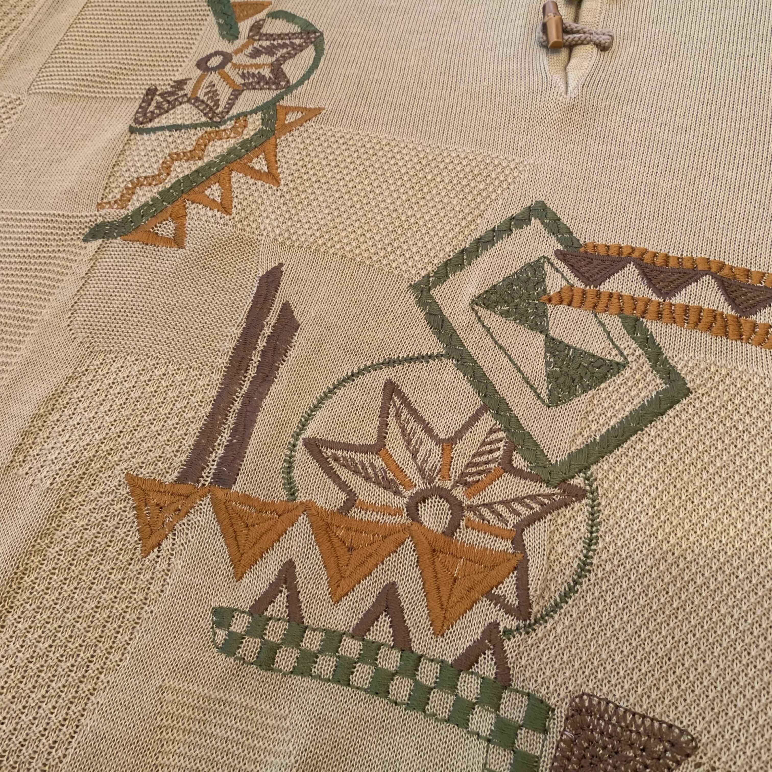 “Comvieste” beige acrylic/linen toggle&embroidery design S/S knit polo