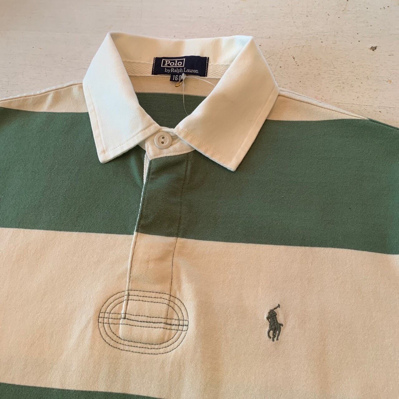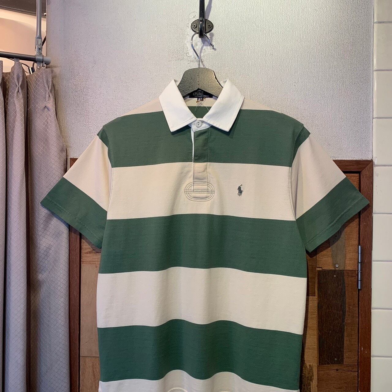“Polo by Ralph Lauren” beige×green cotton border design S/S polo shirt