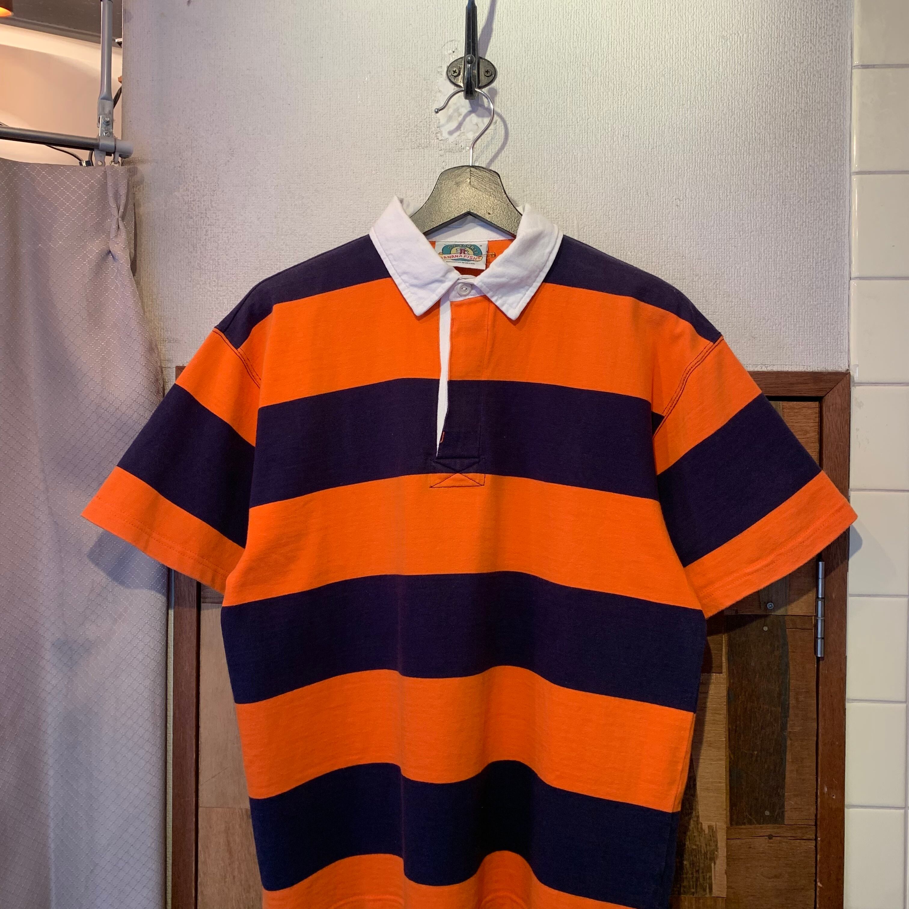 “BANANA FISH” orange×navy cotton border pattern S/S polo shirt