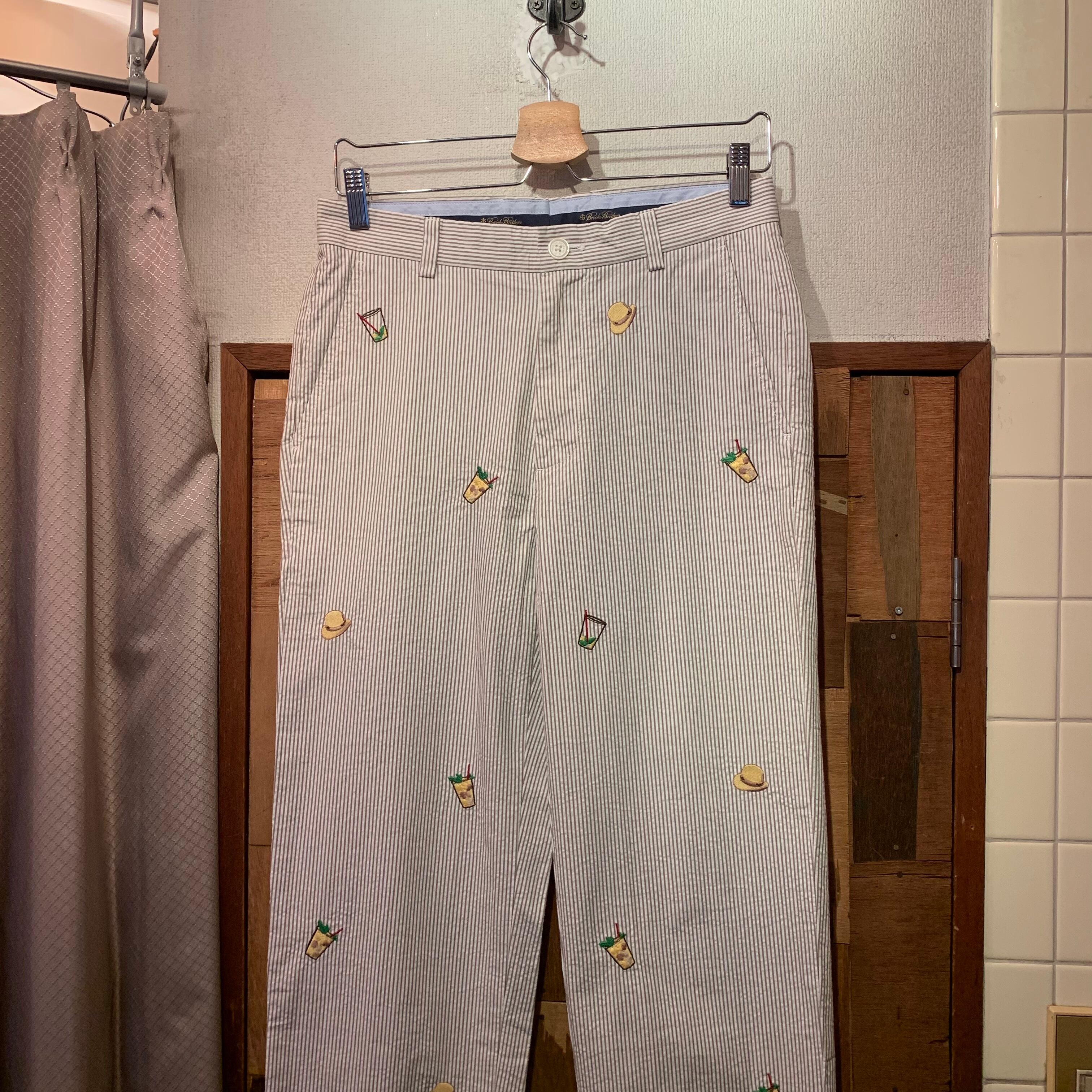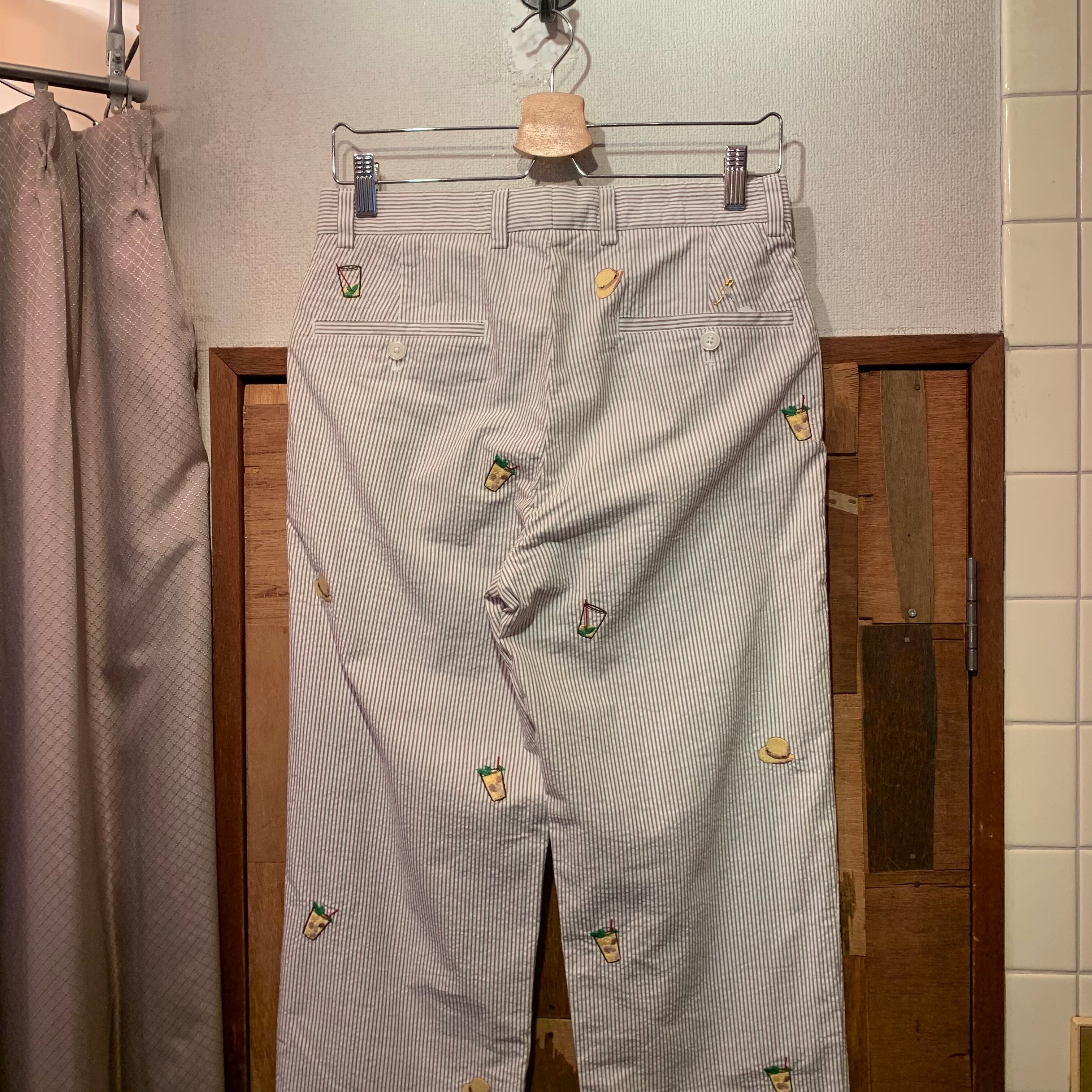 “Brooks Brothers” white×greige cotton embroidery design seersucker pants