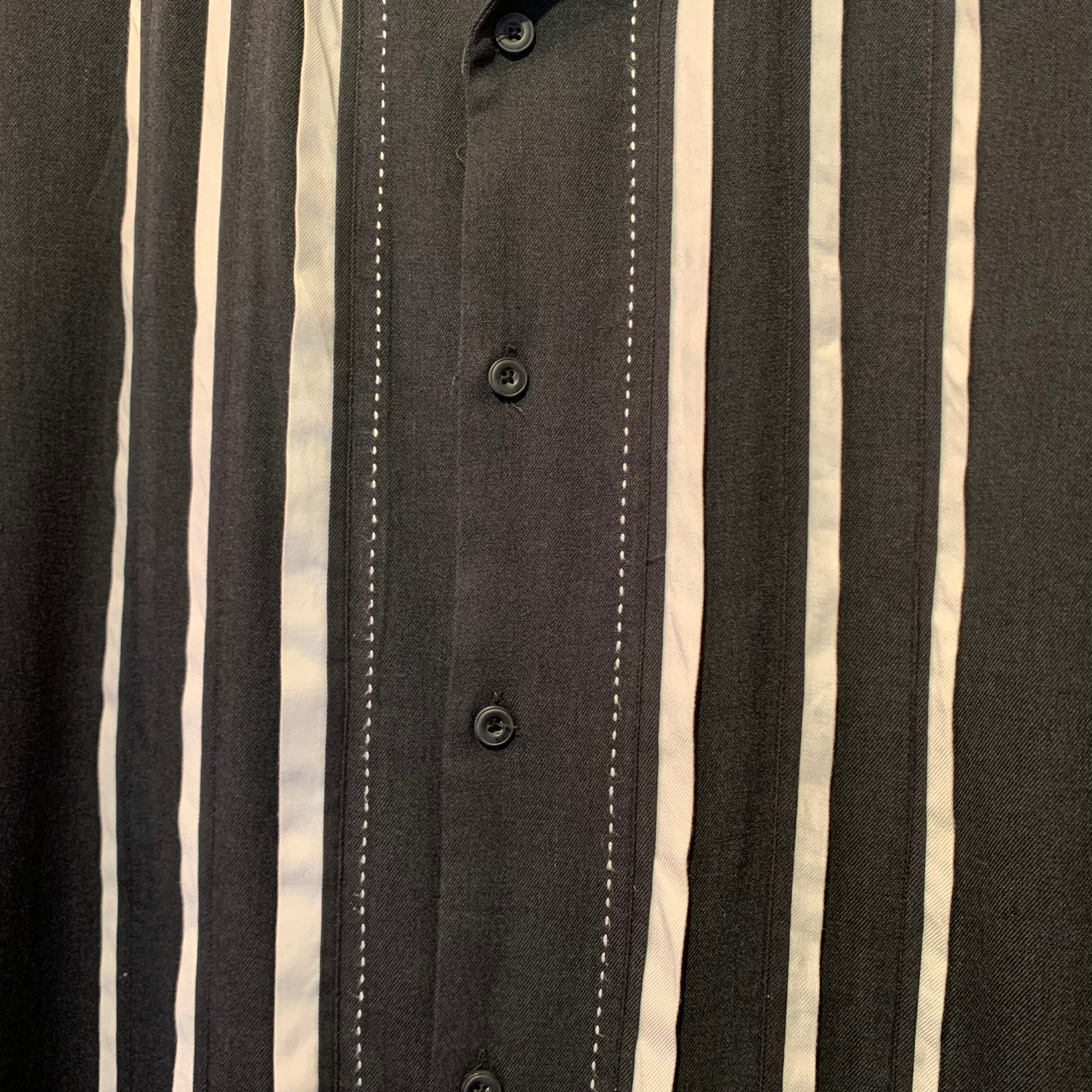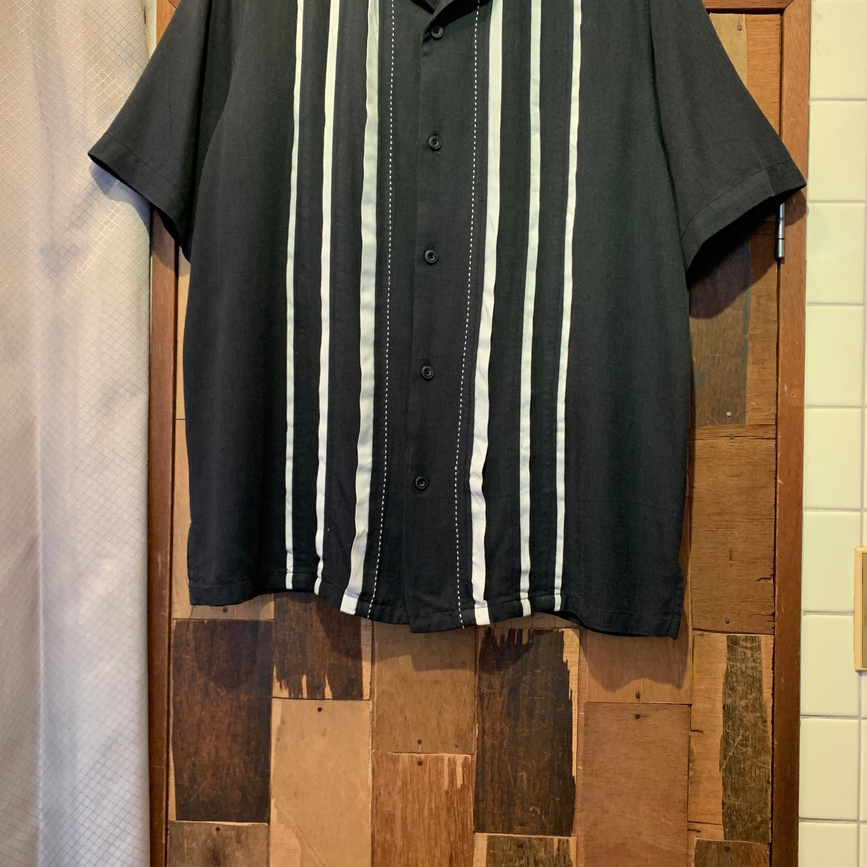 “vintage silk” black×white silk line design S/S open-collar shirt