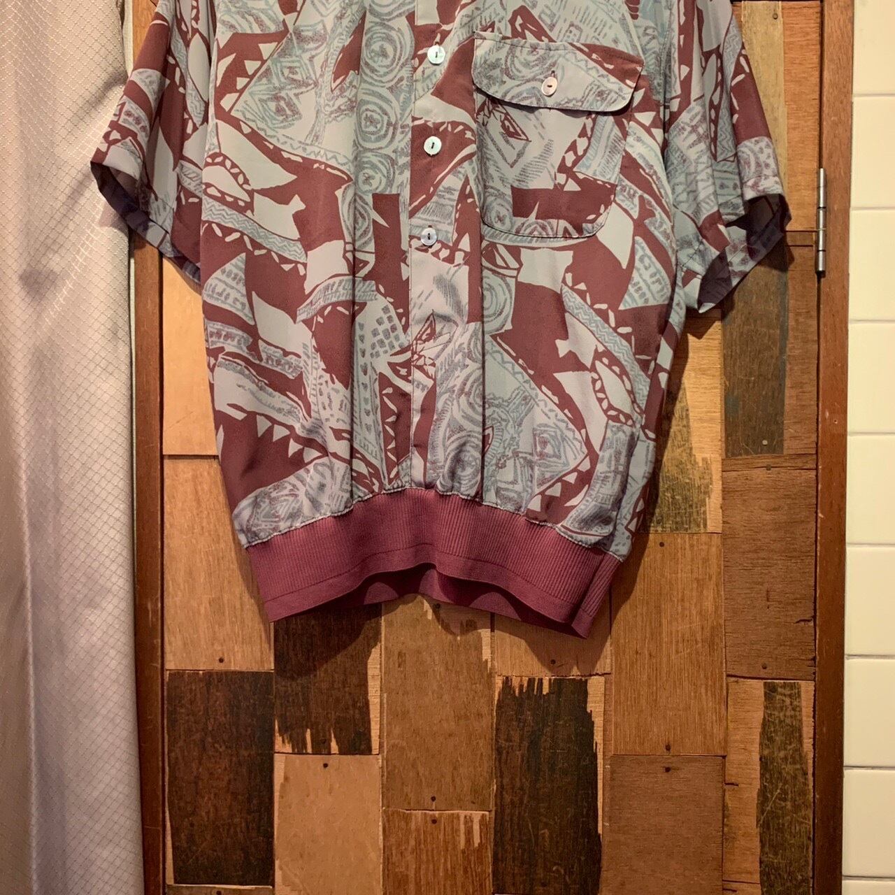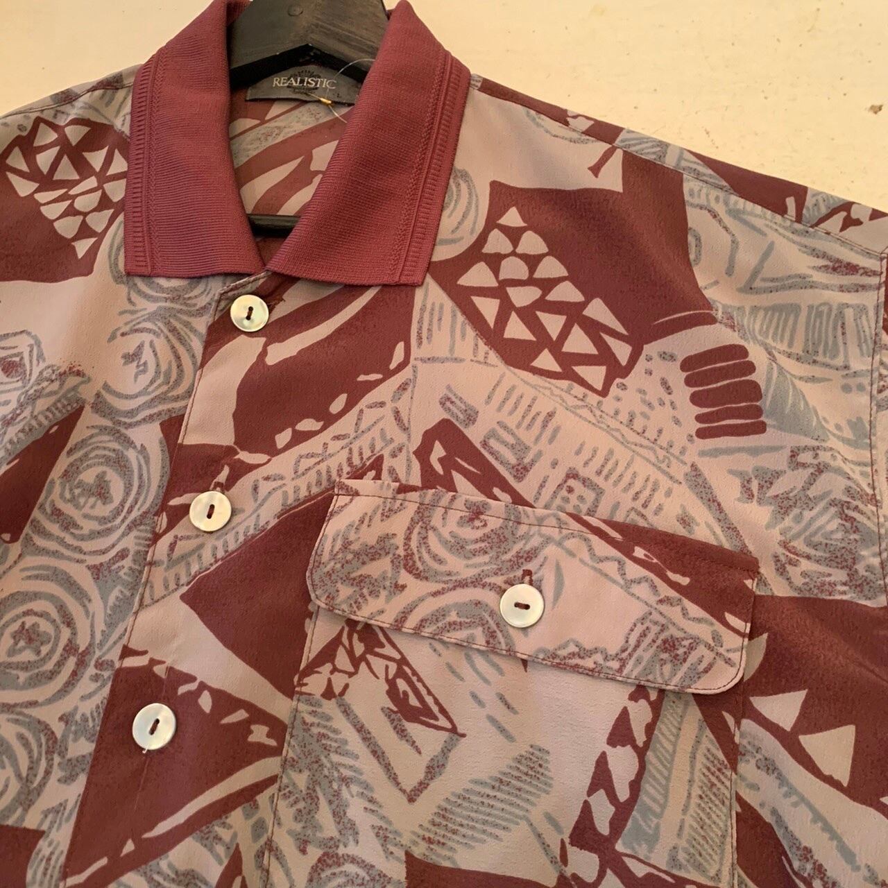 “REALISTIC” burgundy×smoke gray base polyester unique pattern S/S pullover shirt