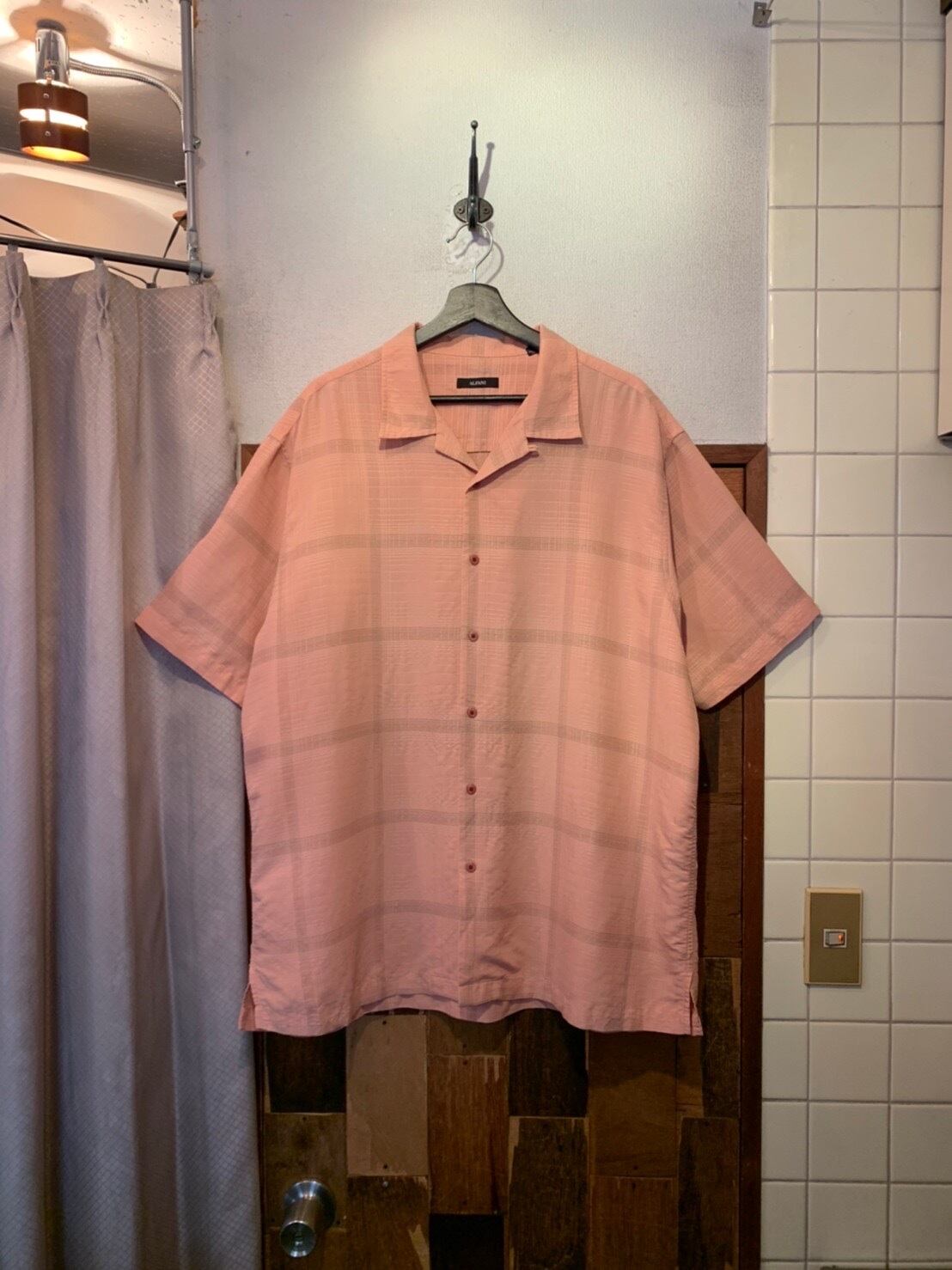 “ALFANI” pink modal/poly repeating pattern S/S open-collar shirt