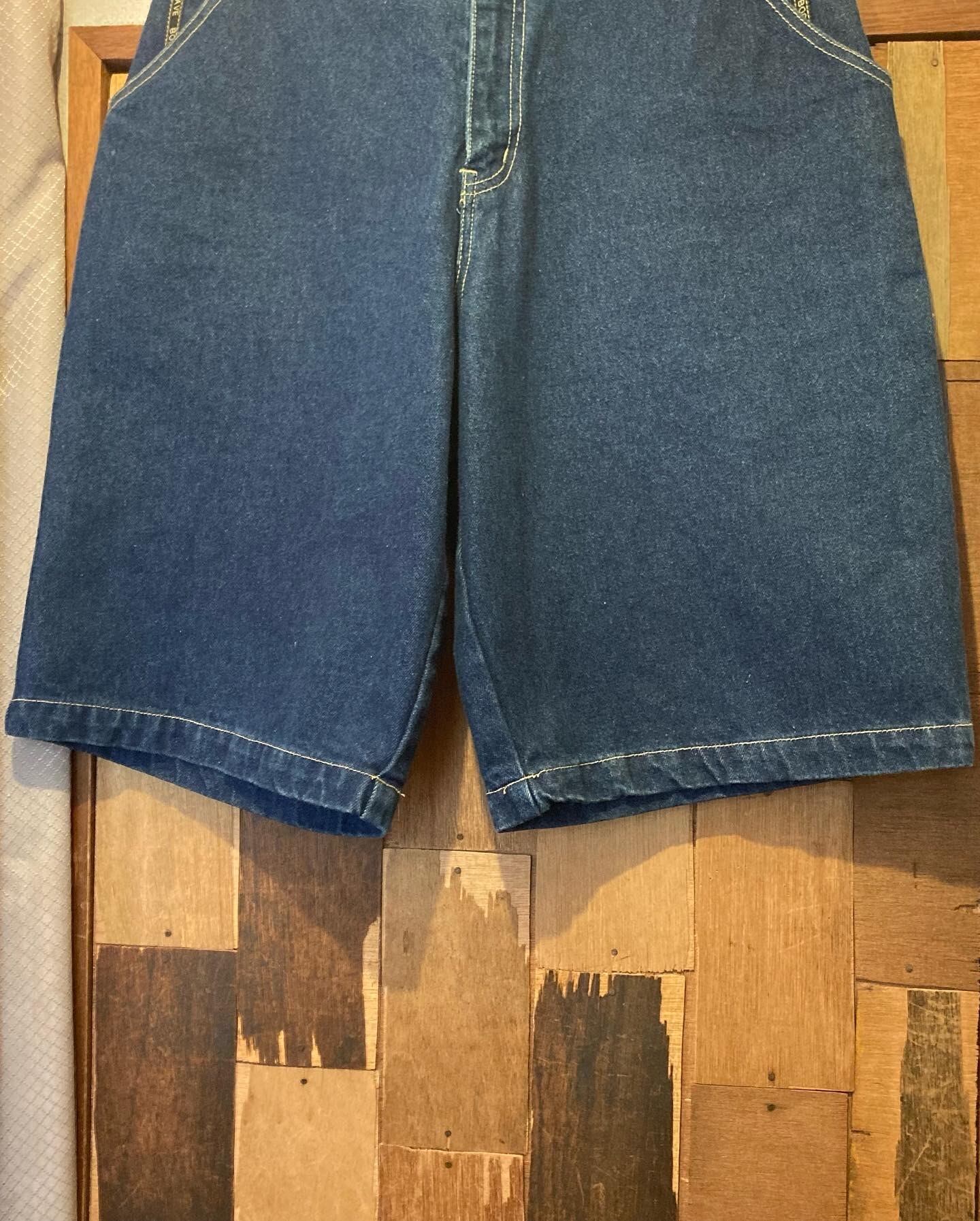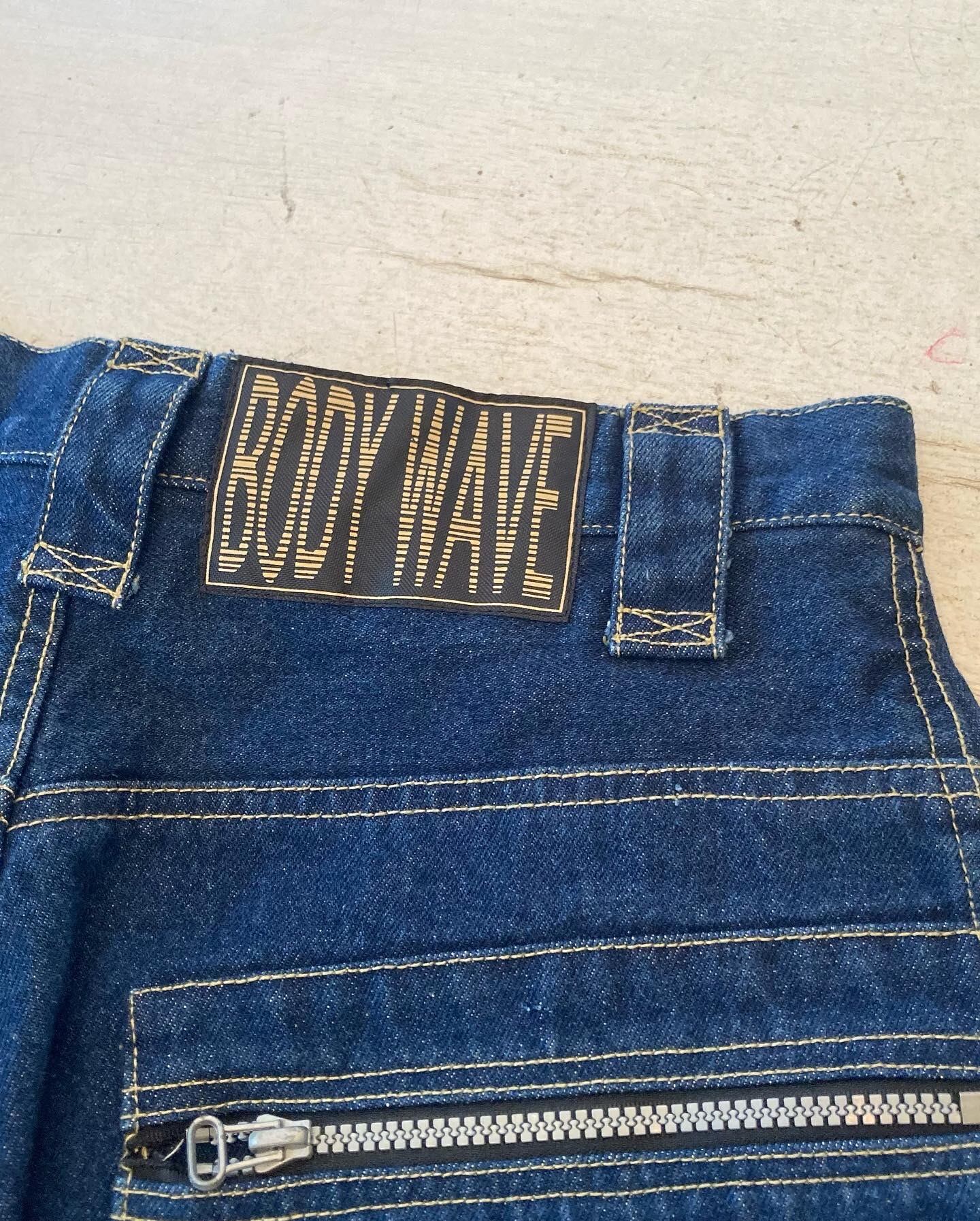 “BODY WAVE” indigo blue cotton zip pocket denim shorts