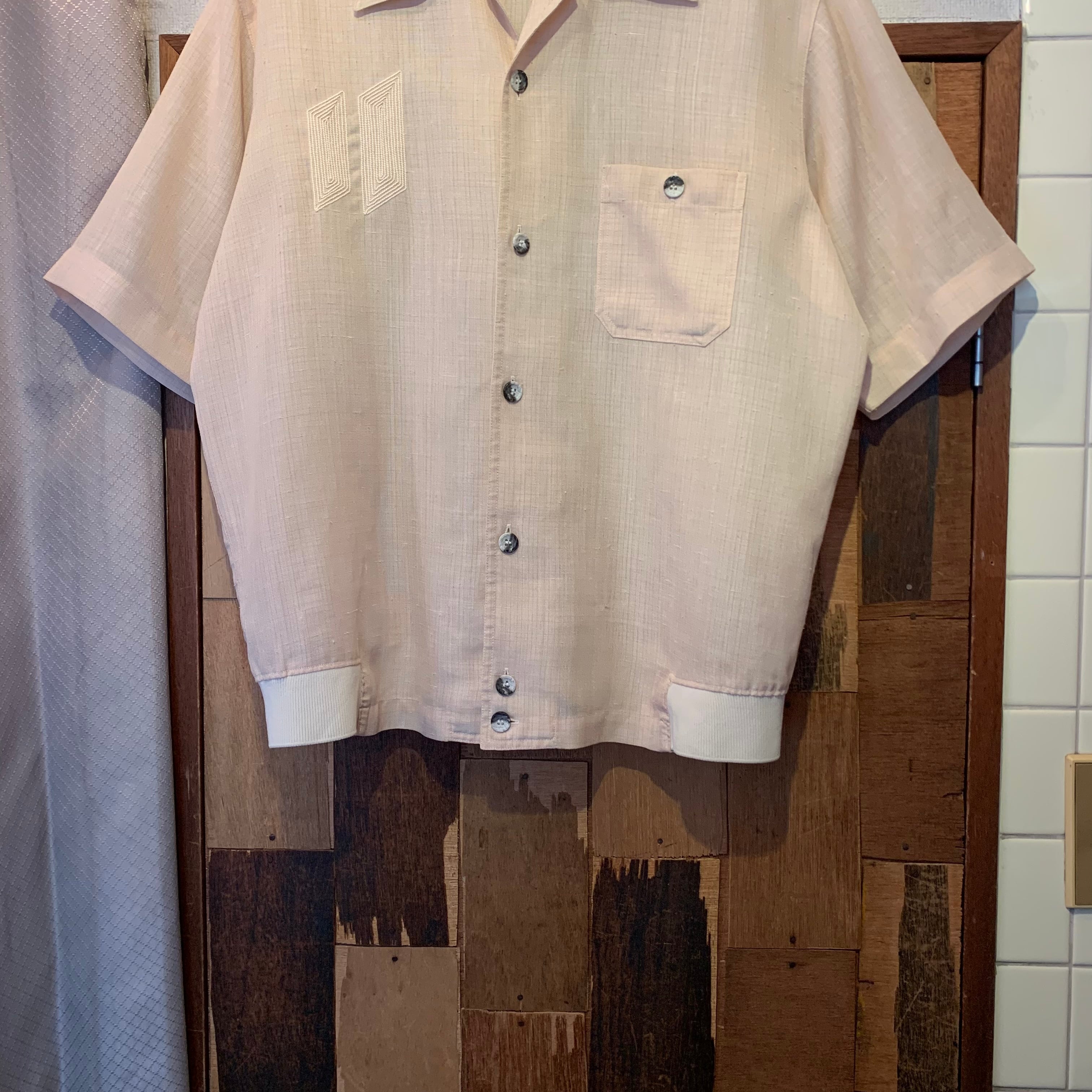 “Rotary group” 80’s~ beige embroidery design S/S open-collar shirt
