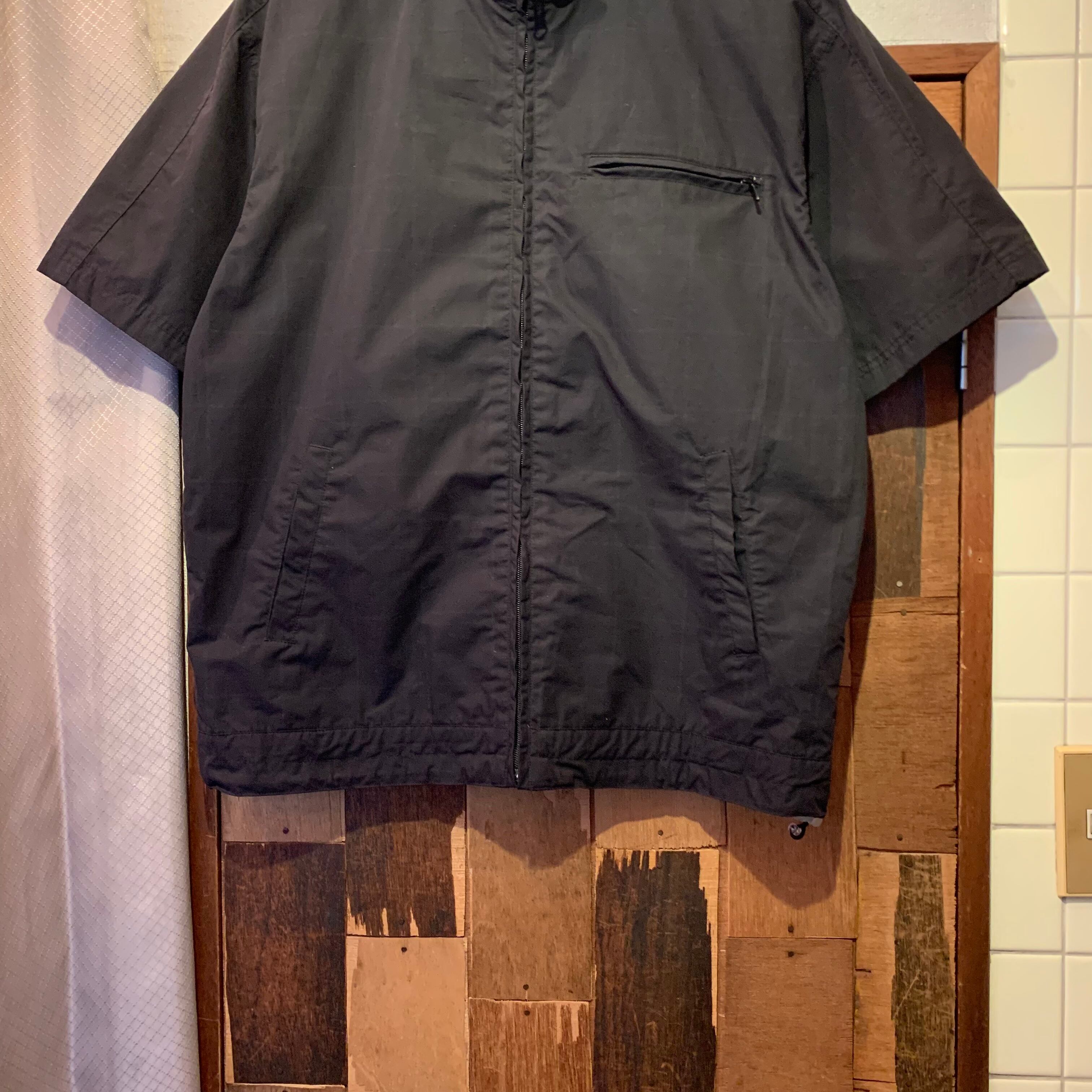 “MONMAMES” dark navy poly/cotton check pattern zip-up S/S jacket