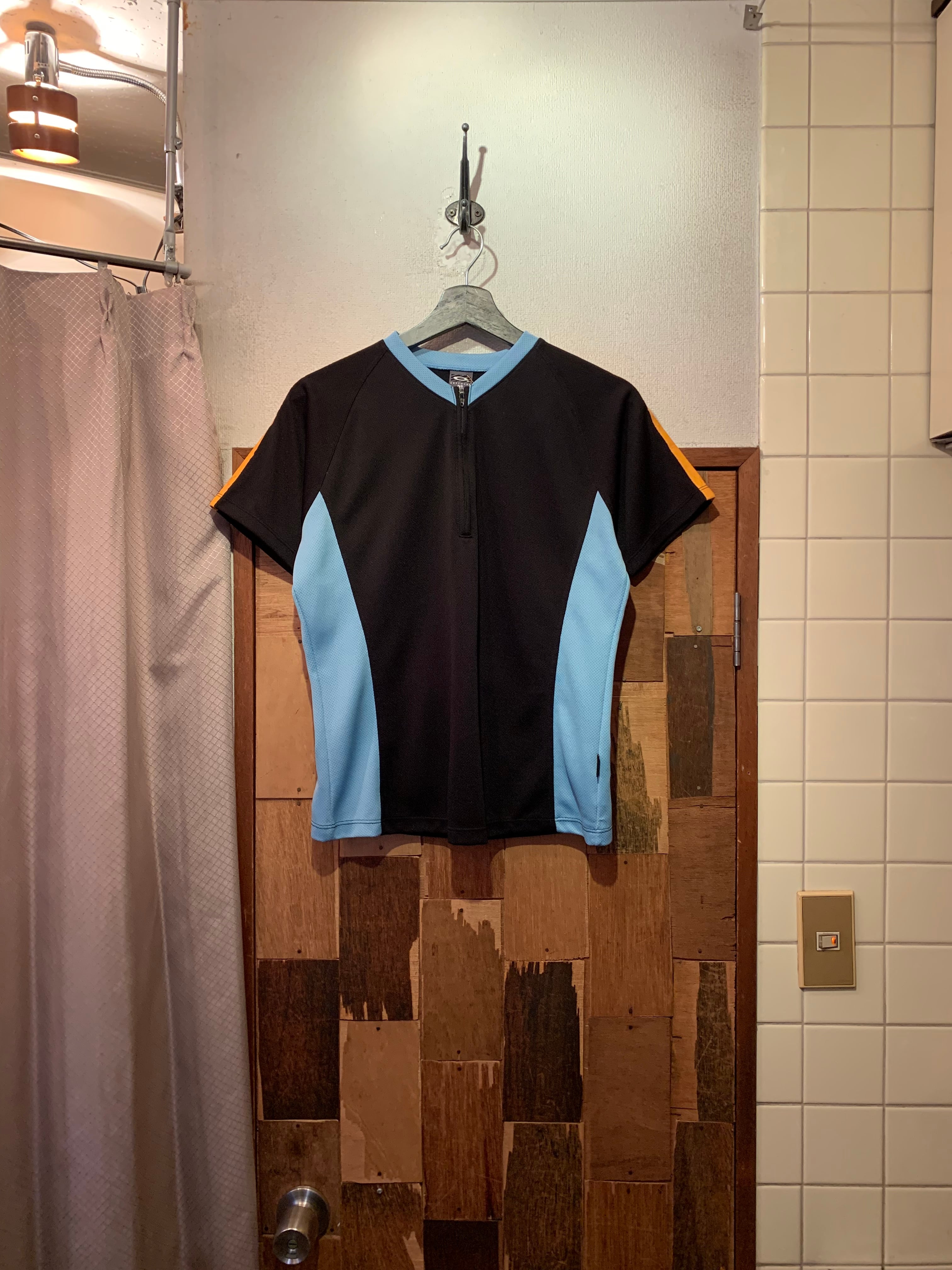 “OAKLEY” 00’s black×light blue×yellow polyester half-zip cycling shirt