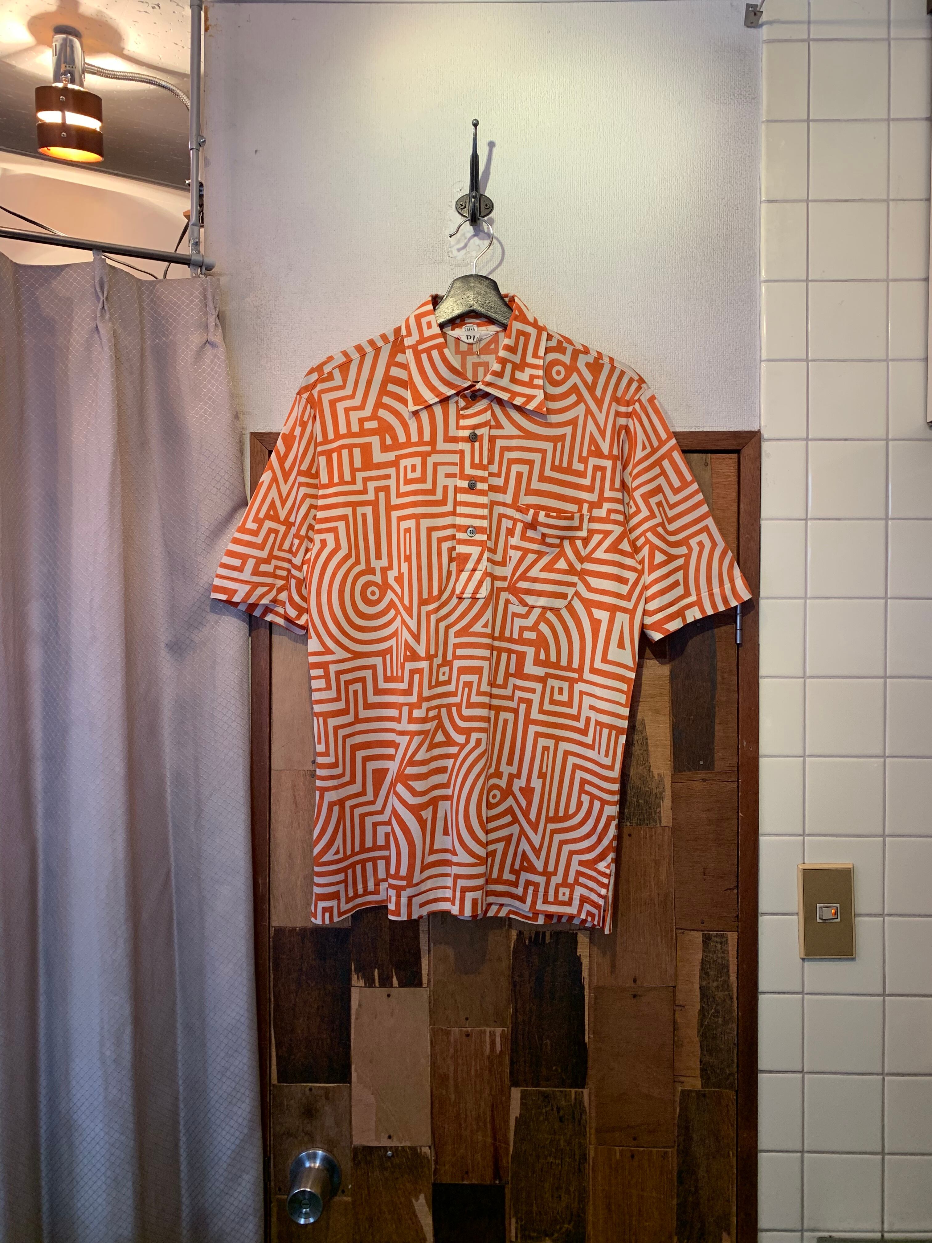 “PIA” orange×white acrylic unique pattern S/S polo shirt