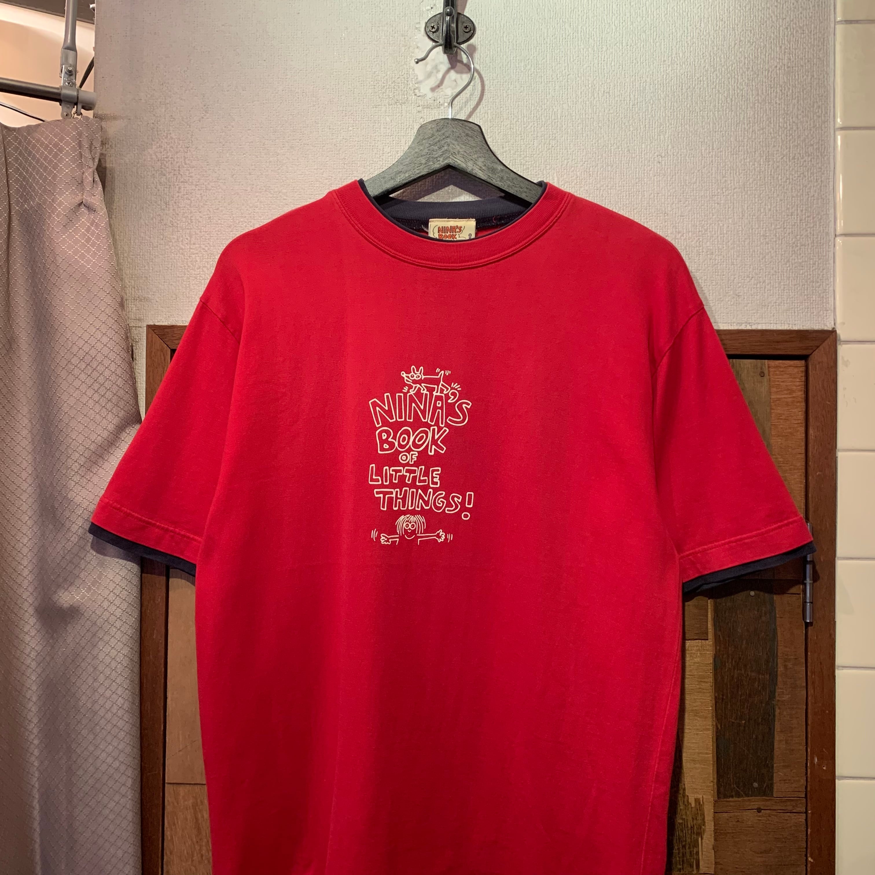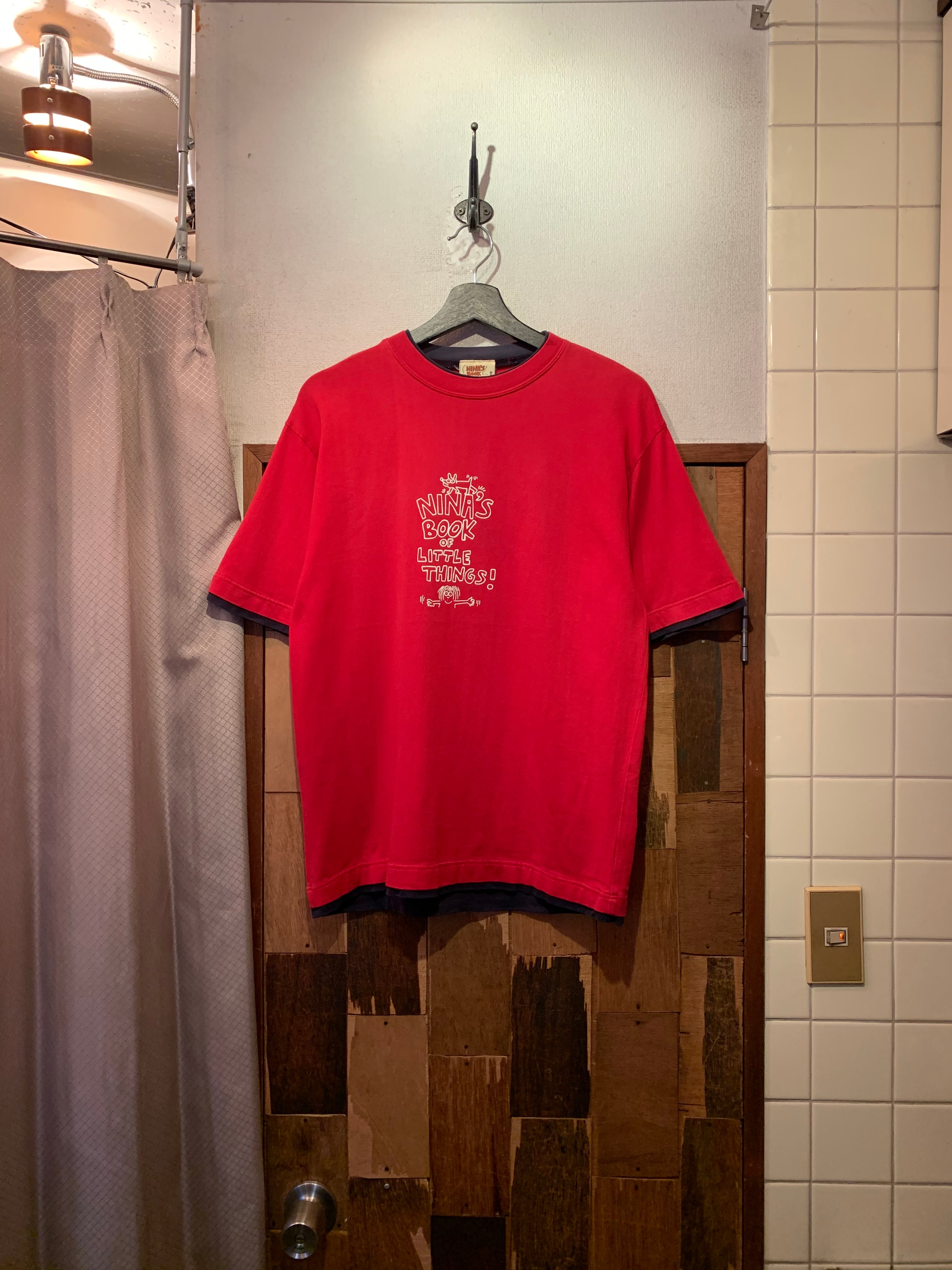 “Keith Haring - NINA’S BOOK OF LITTLE THINGS” red×dark navy cotton fake layered&printed S/S T-shirt